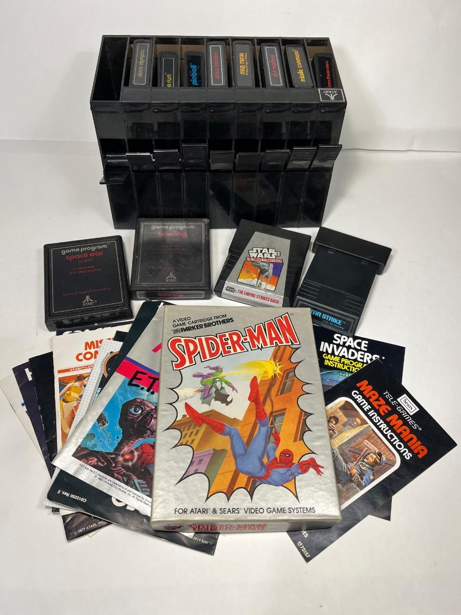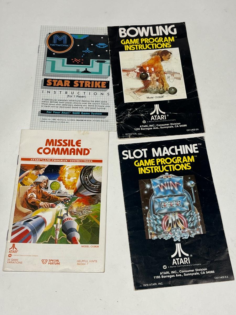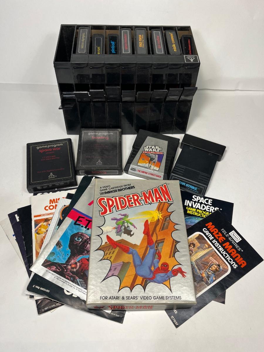 LOT 202: Atari 2600 Game Cartidges, Instructions, Holder - Space Invaders, Missle Command, Star Wars + More