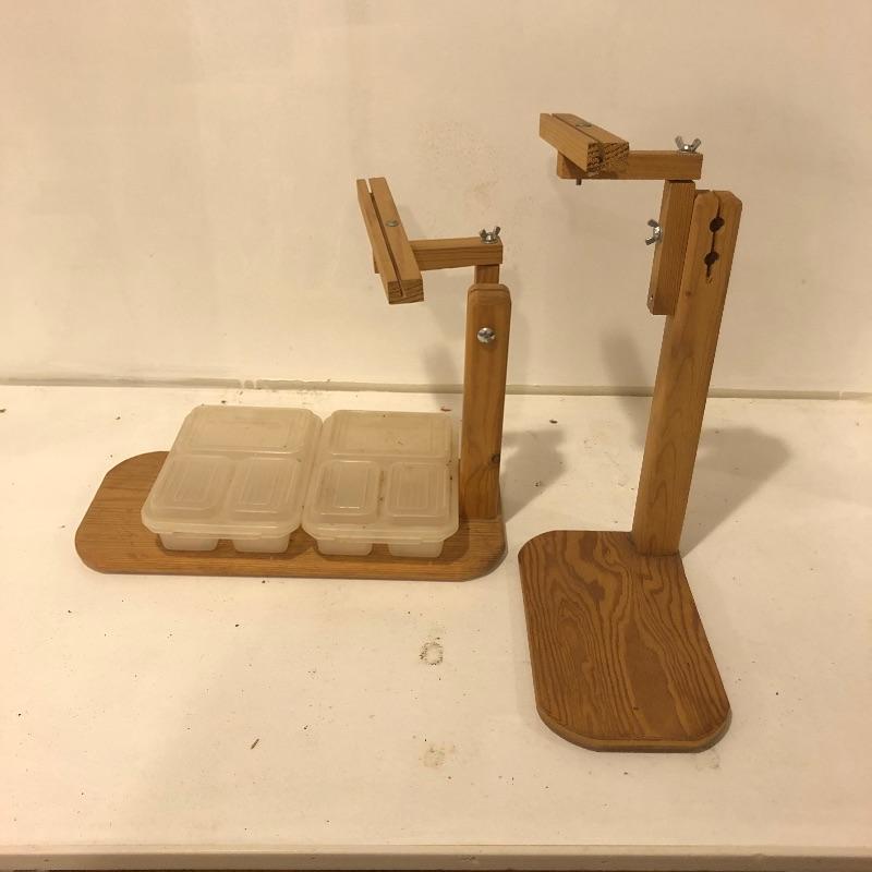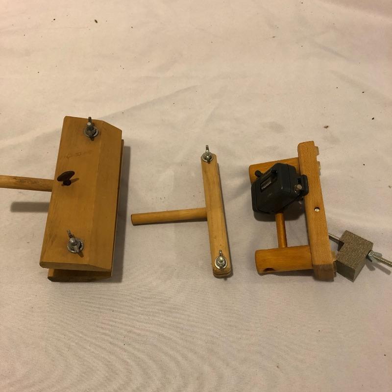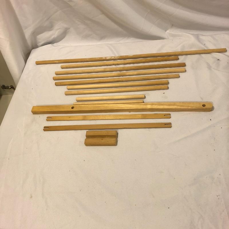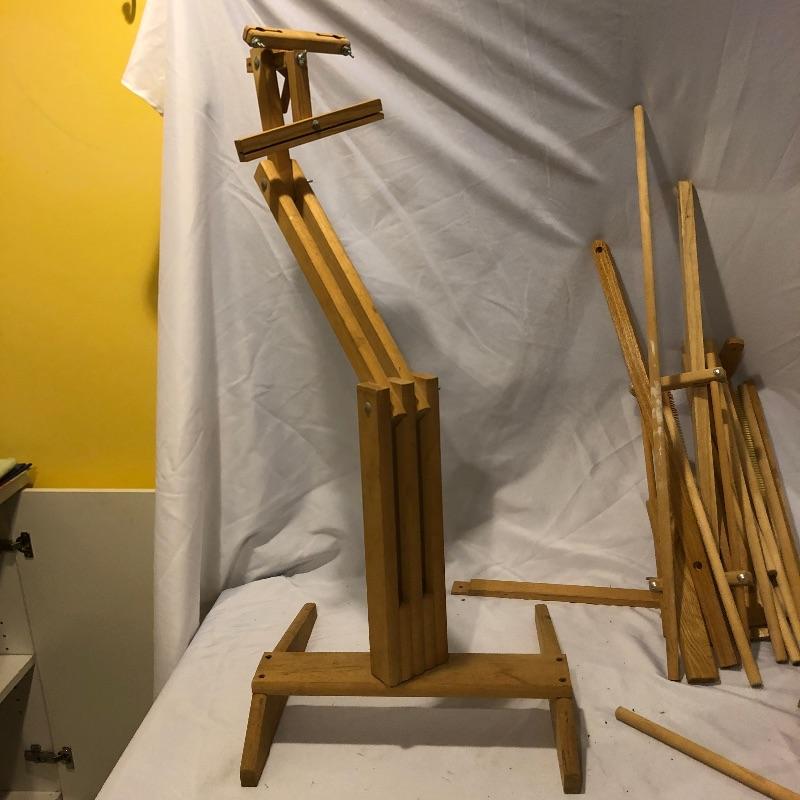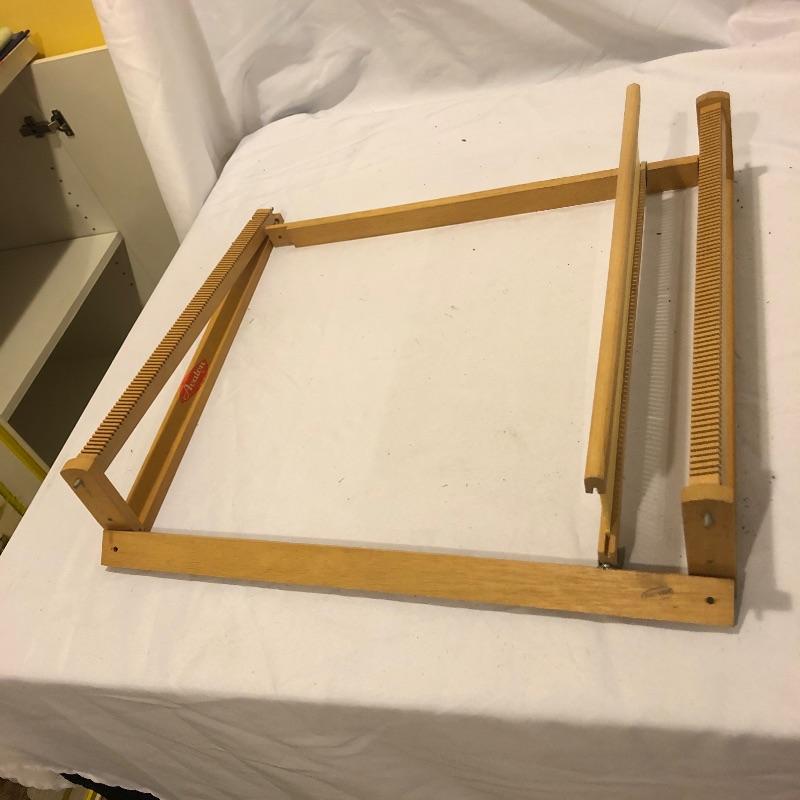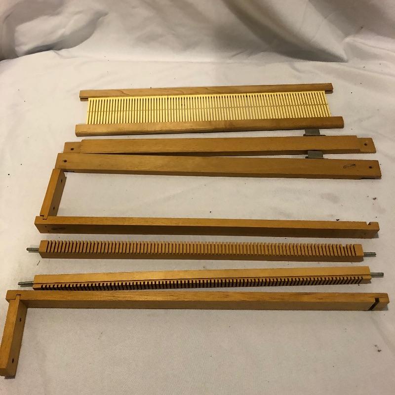 This large lot includes an Avalon loom plus extra loom parts and accessories. There are lots of images to look through to see what exactly is all here. The Avalon loom appears to be just missing one small piece that is the piece photographed next to the manual. As you will see from the images any fabric related items do show signs of mold, but all less porous items such as wood are fine. Lots more loom parts and embroidery stretchers, see images. Also included is an adjustable easel and measuring tools and a 5 gallon bucket with a tool storage attachment.