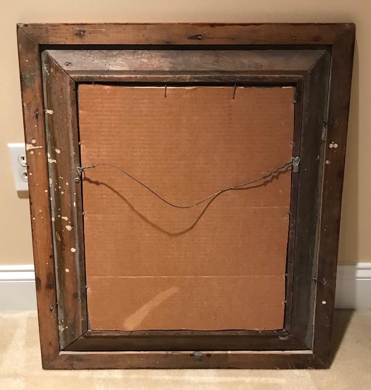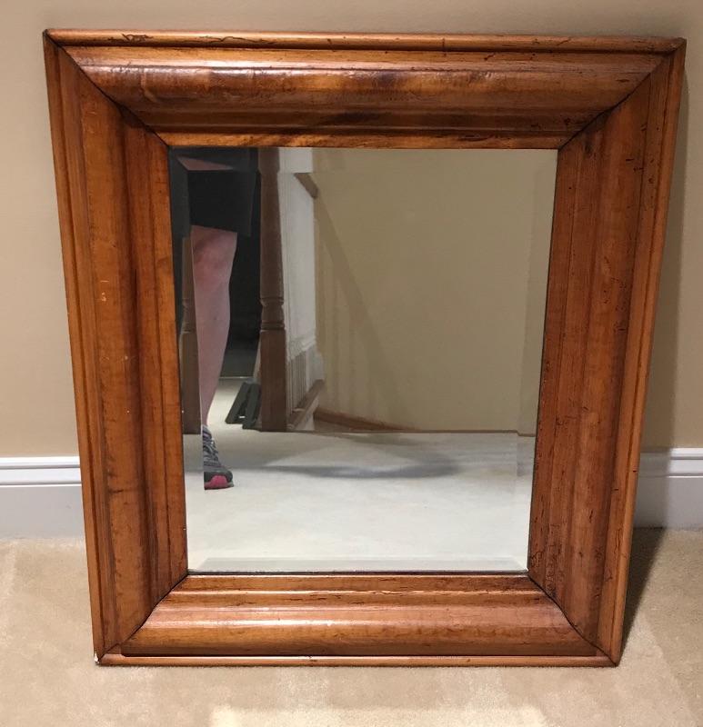 Wood frame beveled mirror measures 28-1/2”x 24”,