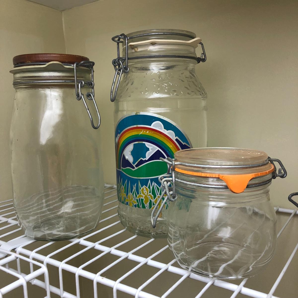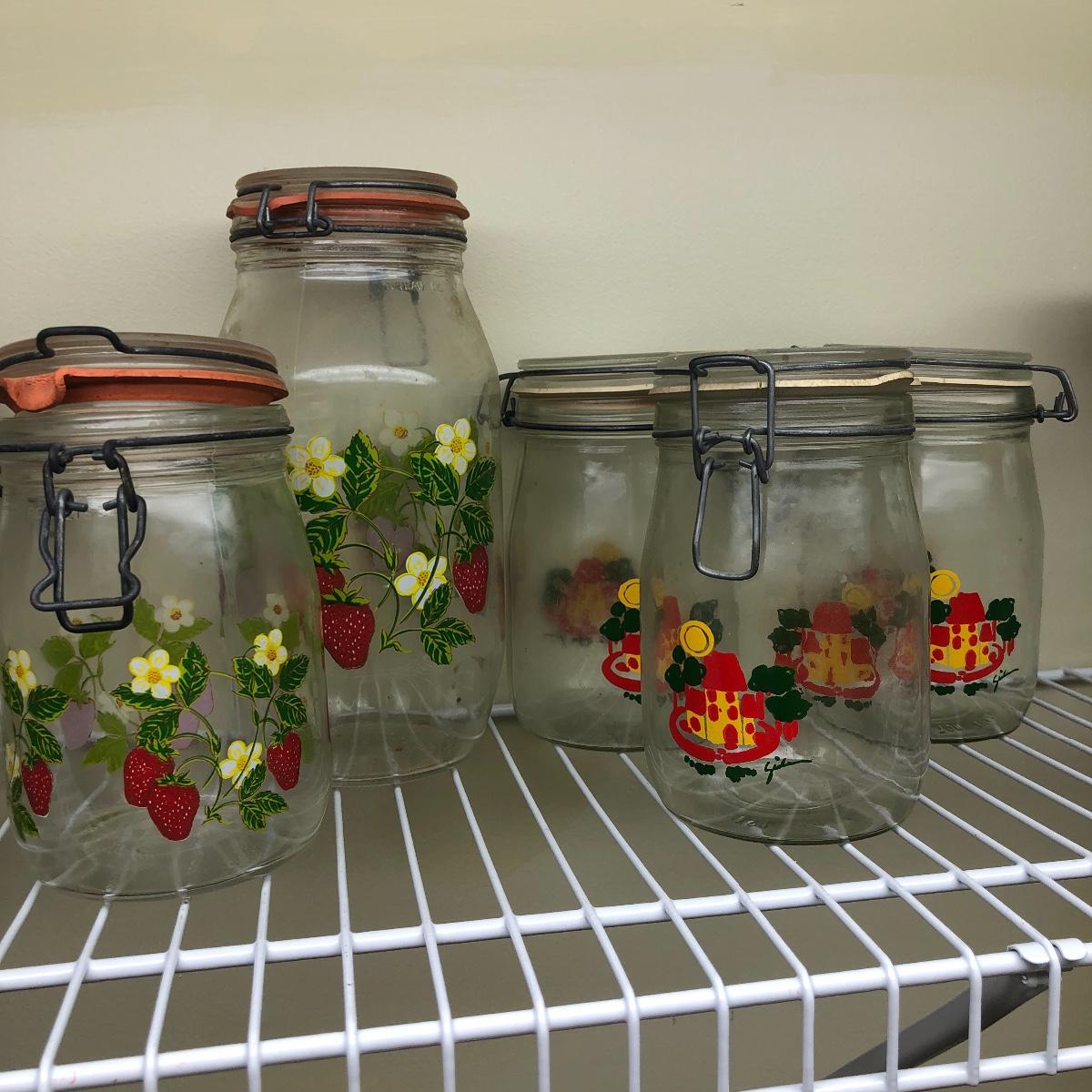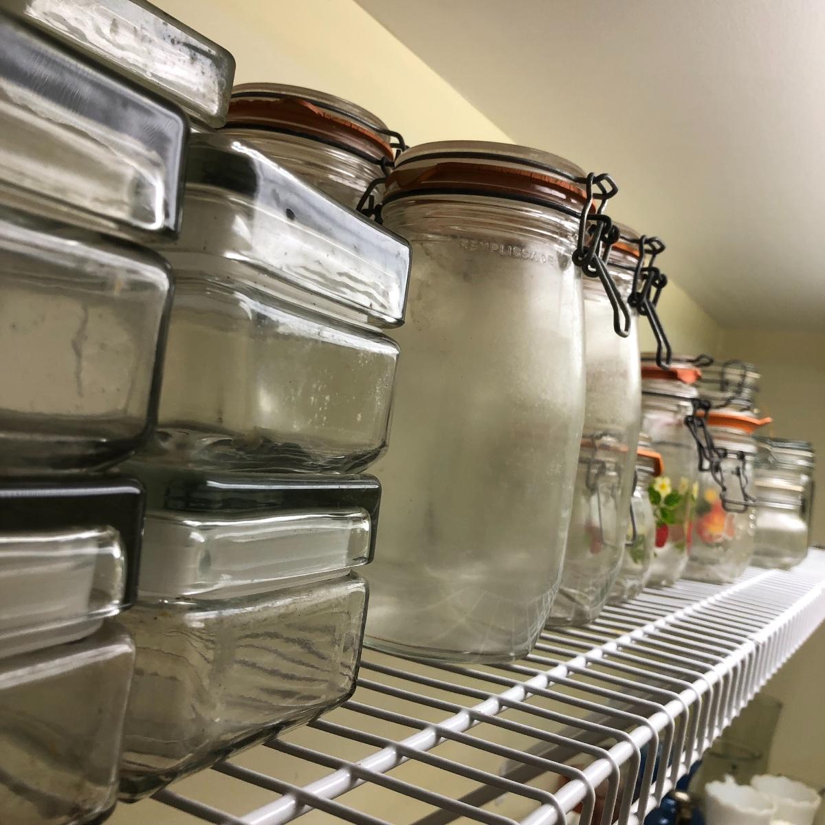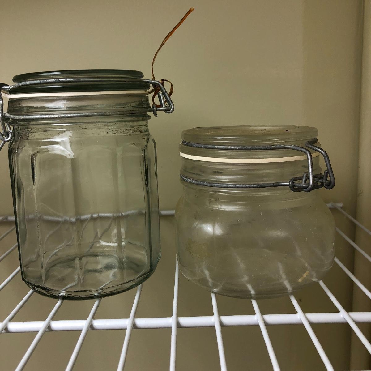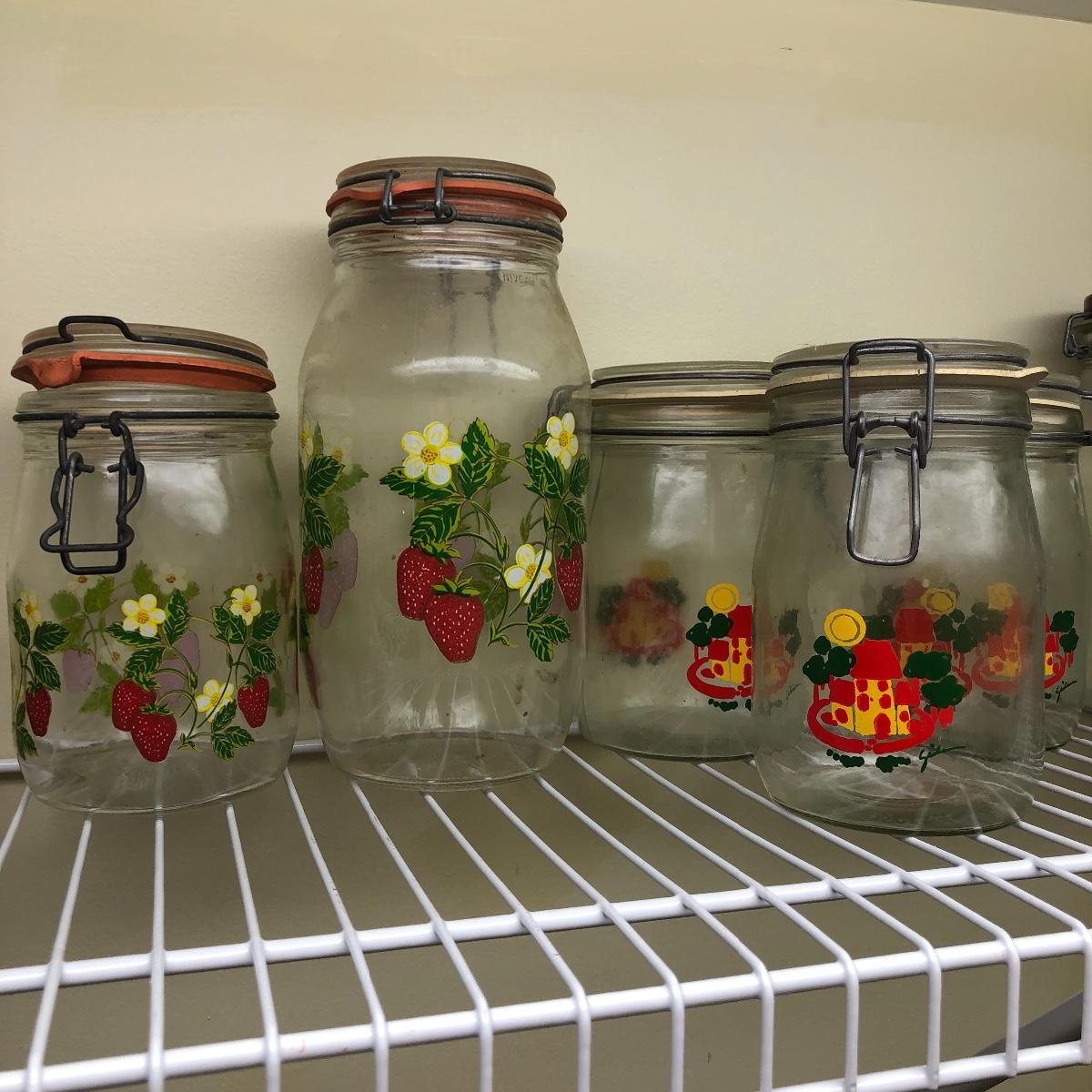 Containerize with this lot! It includes ten square stackables and sixteen close top glass canisters. There are four large canisters that are 10” tall and the remaining are a variety of sizes. Local pick up only.
