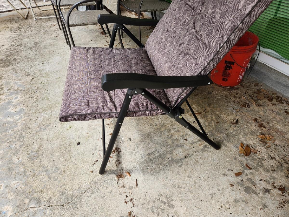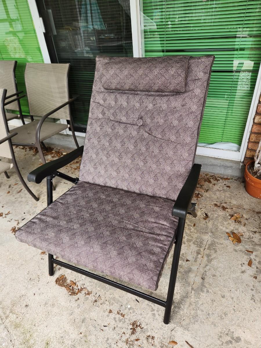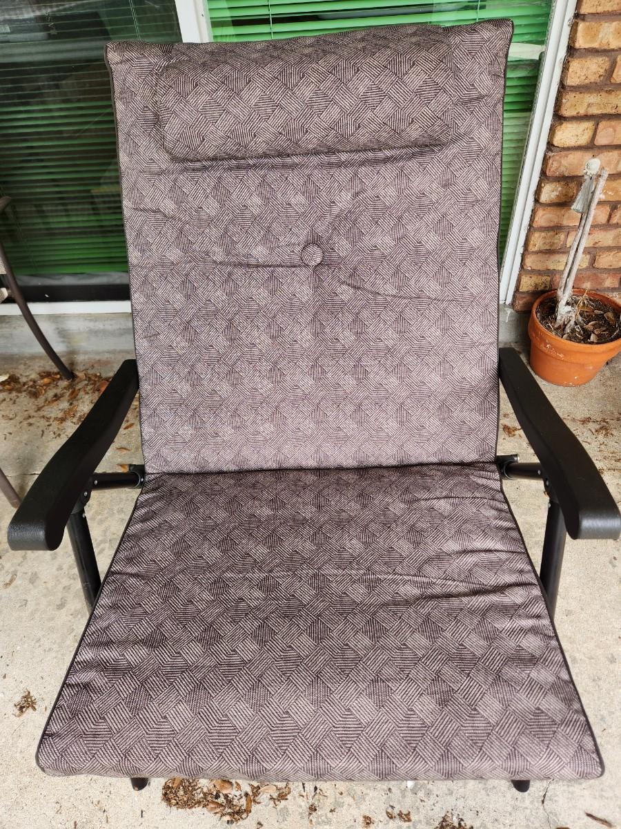 Single Patio Armchair - no maker noted - very comfy. 26" across, 26" deep