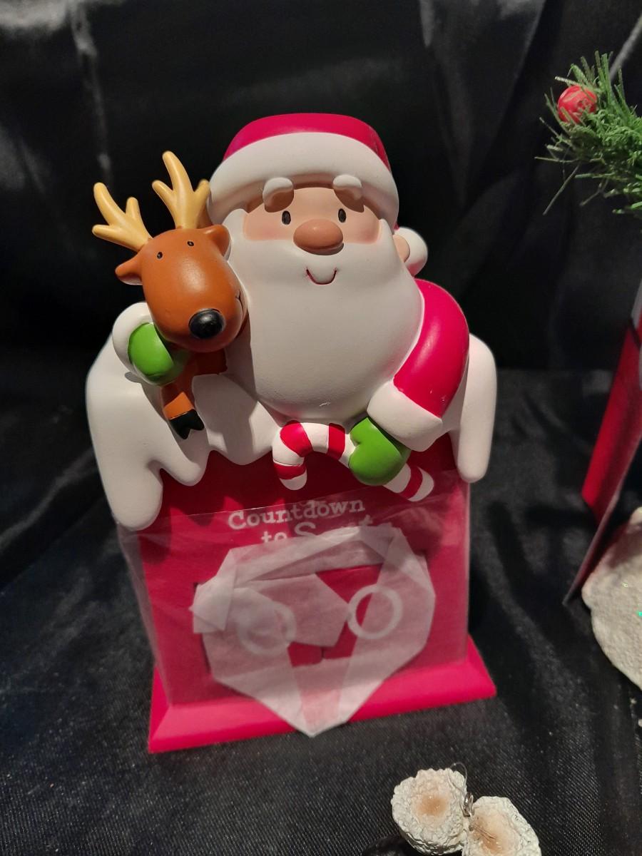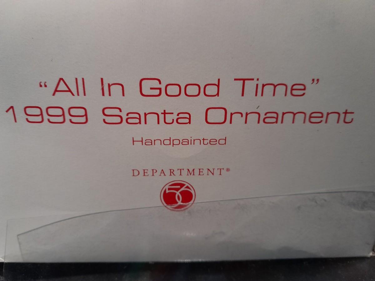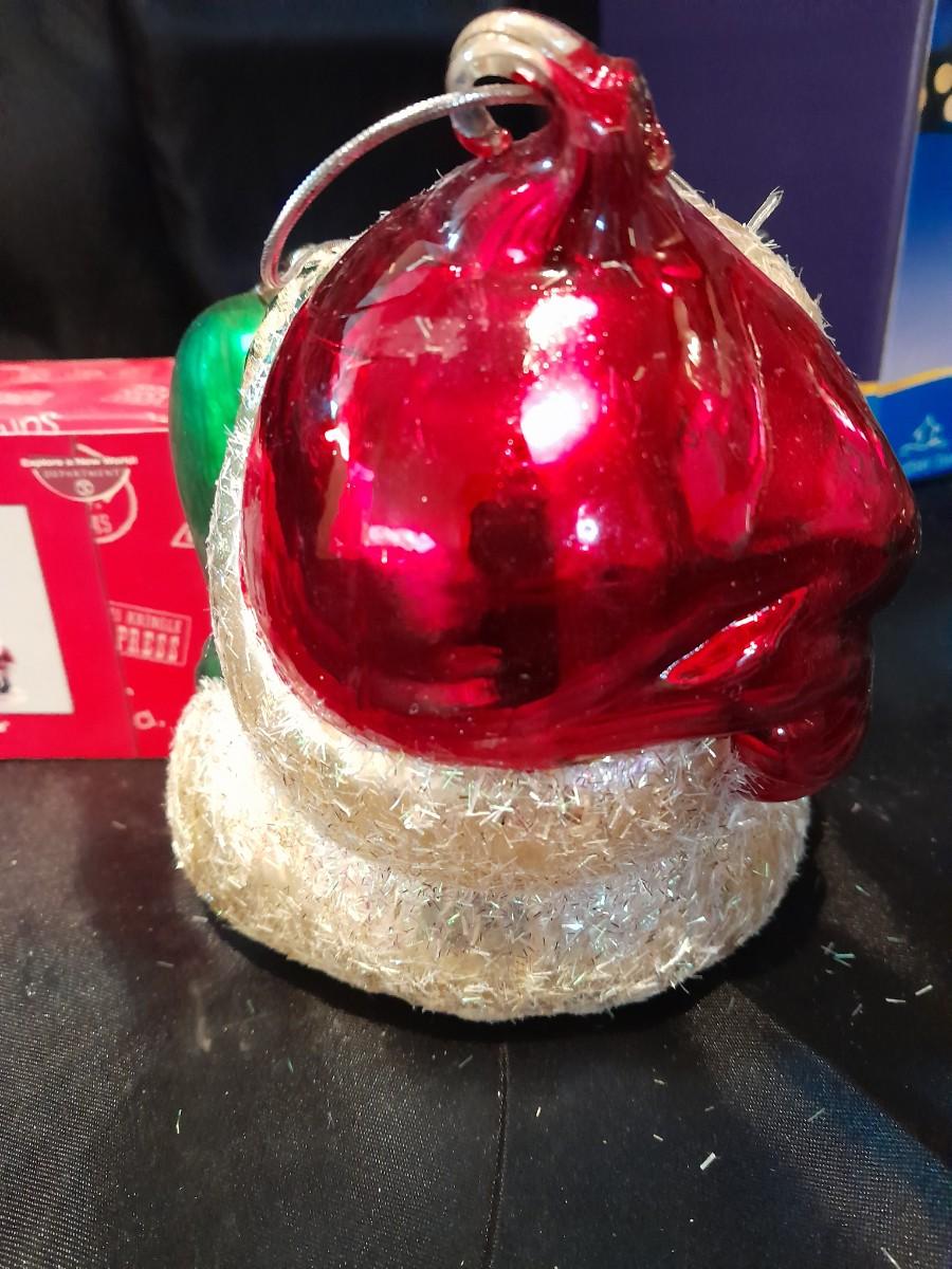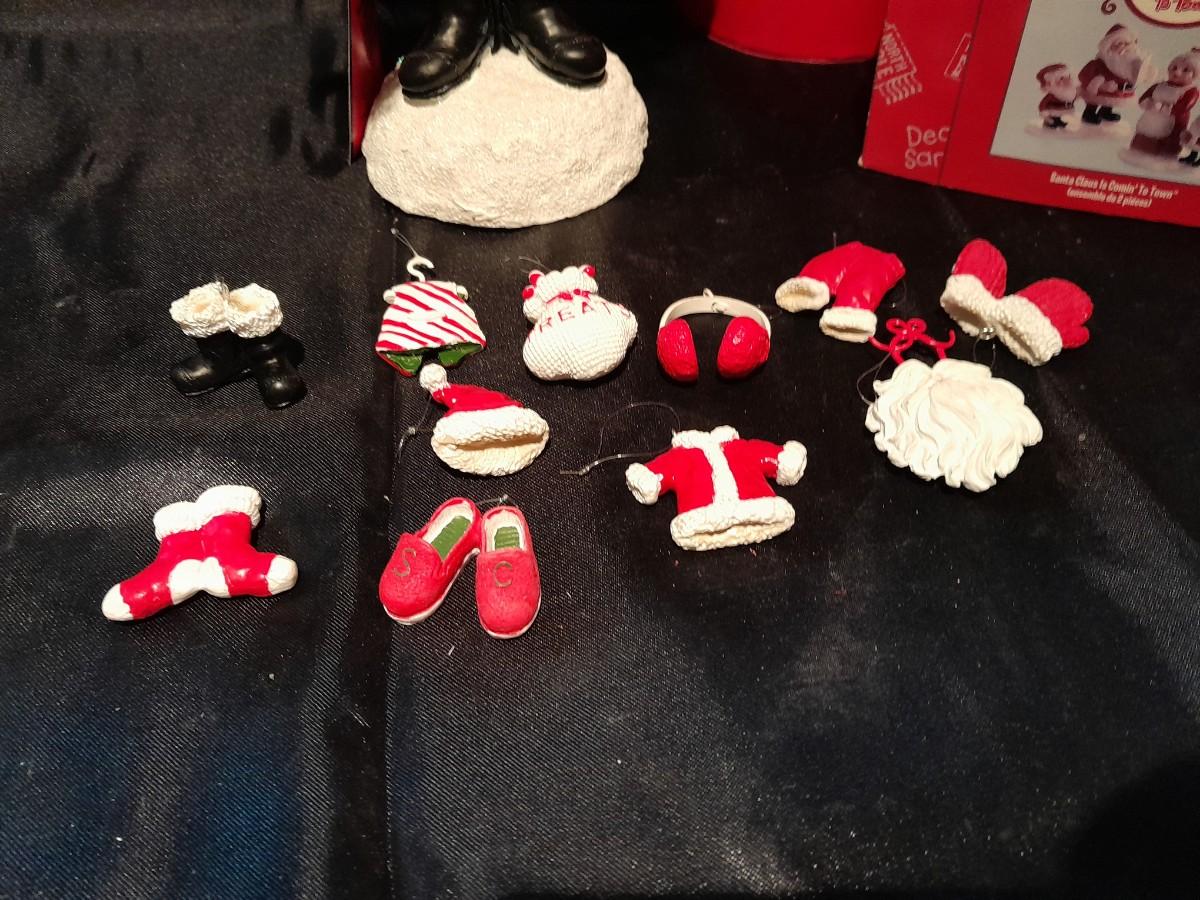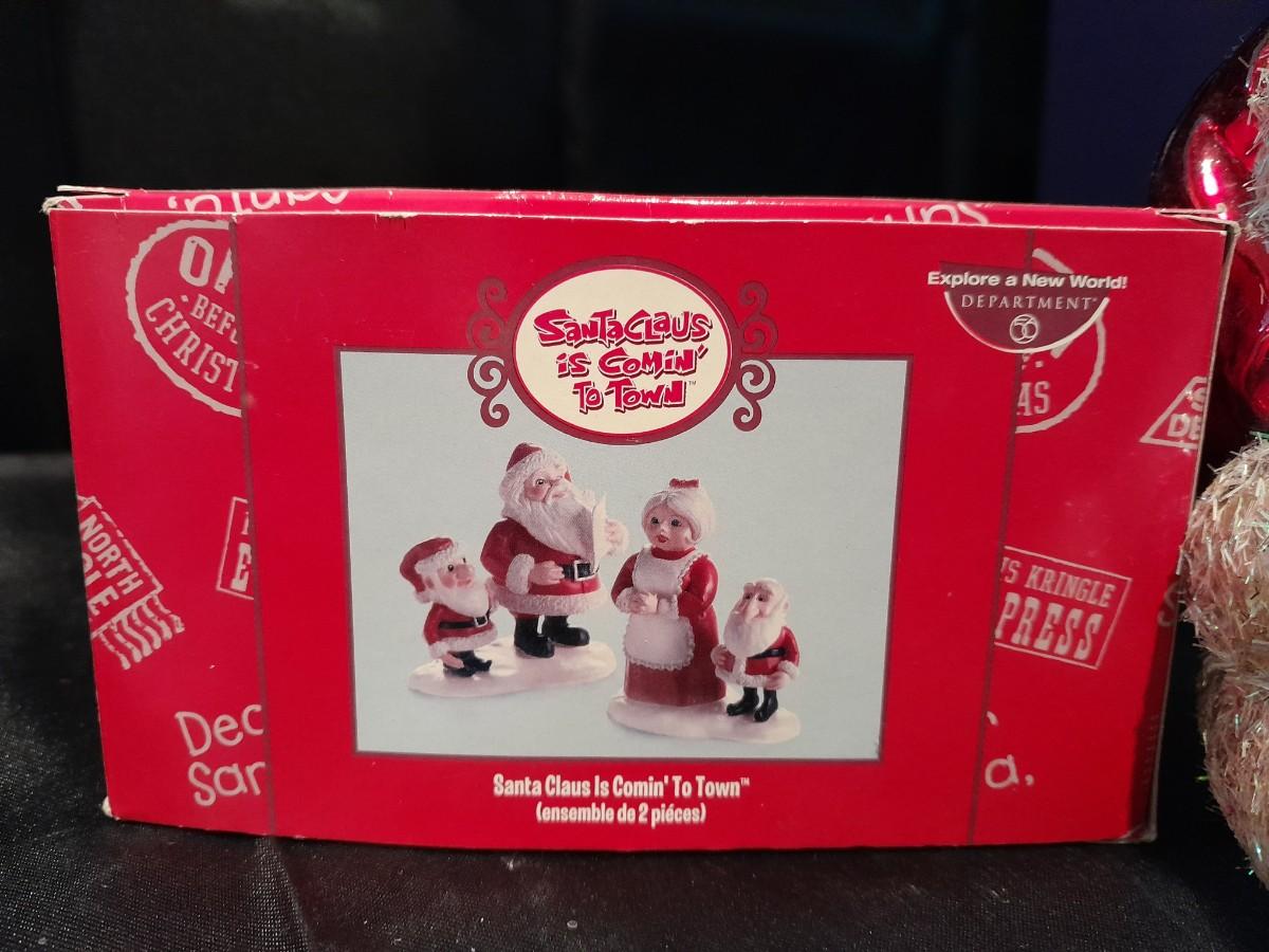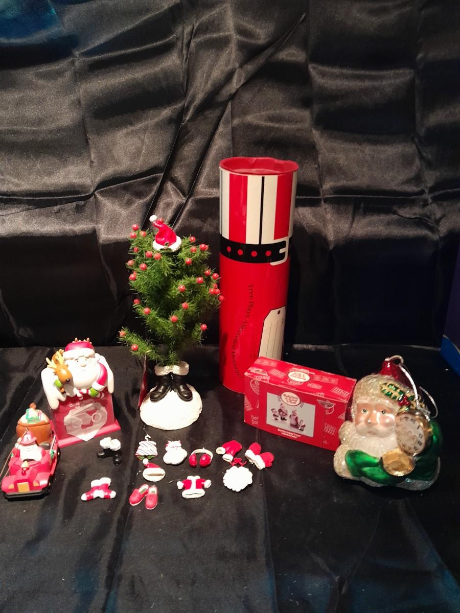 DEPTARTMENT 56 TREE PLAYS A RECORDED MESSAGE, COMES WITH SANTA'S CLOTHING ITEMS AS TREE DECOR, A LARGE GLASS SANTA HEAD, AND MORE