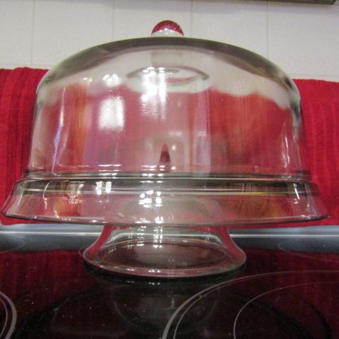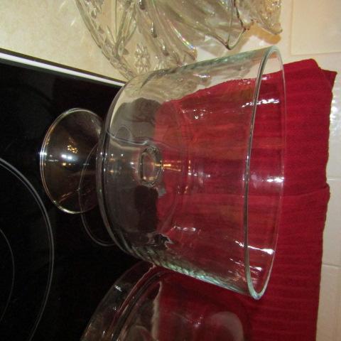 LOT 202 GLASS CAKE PLATE, PLATTERS, FRUIT BOWL AND MORE