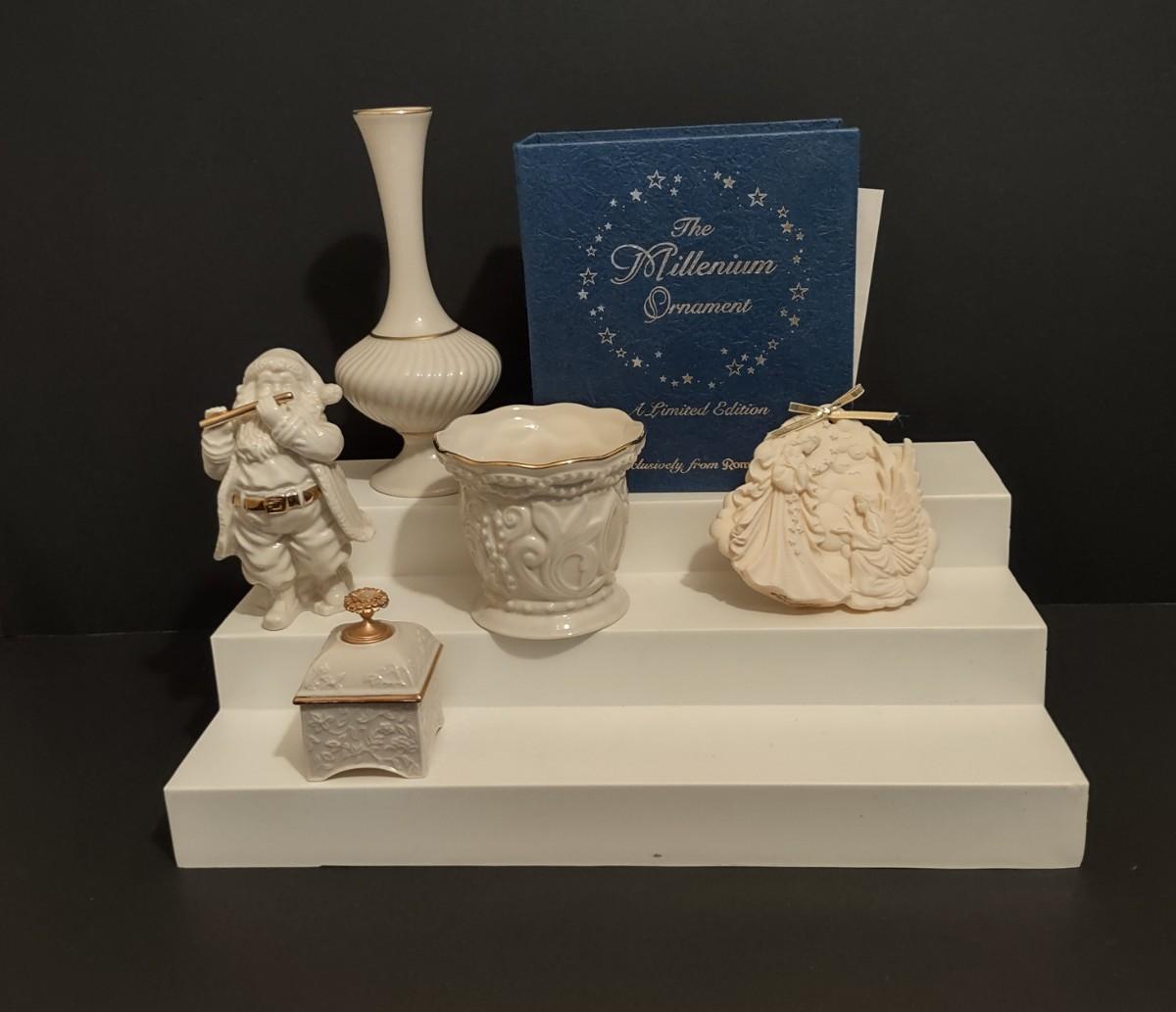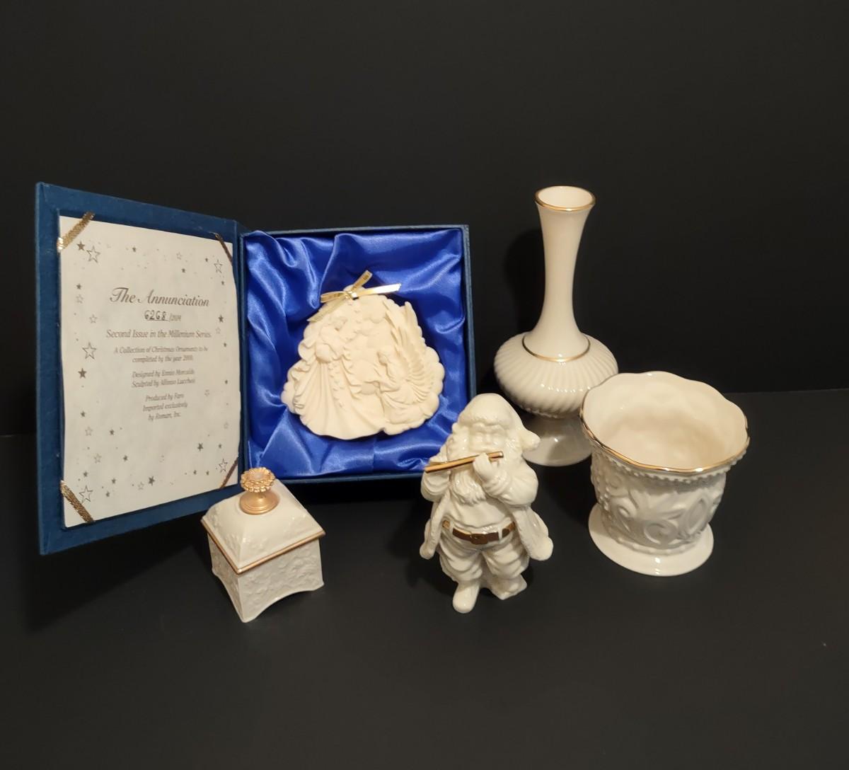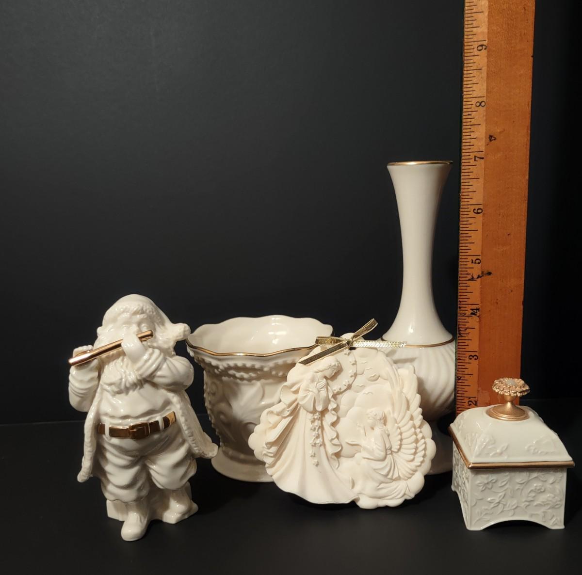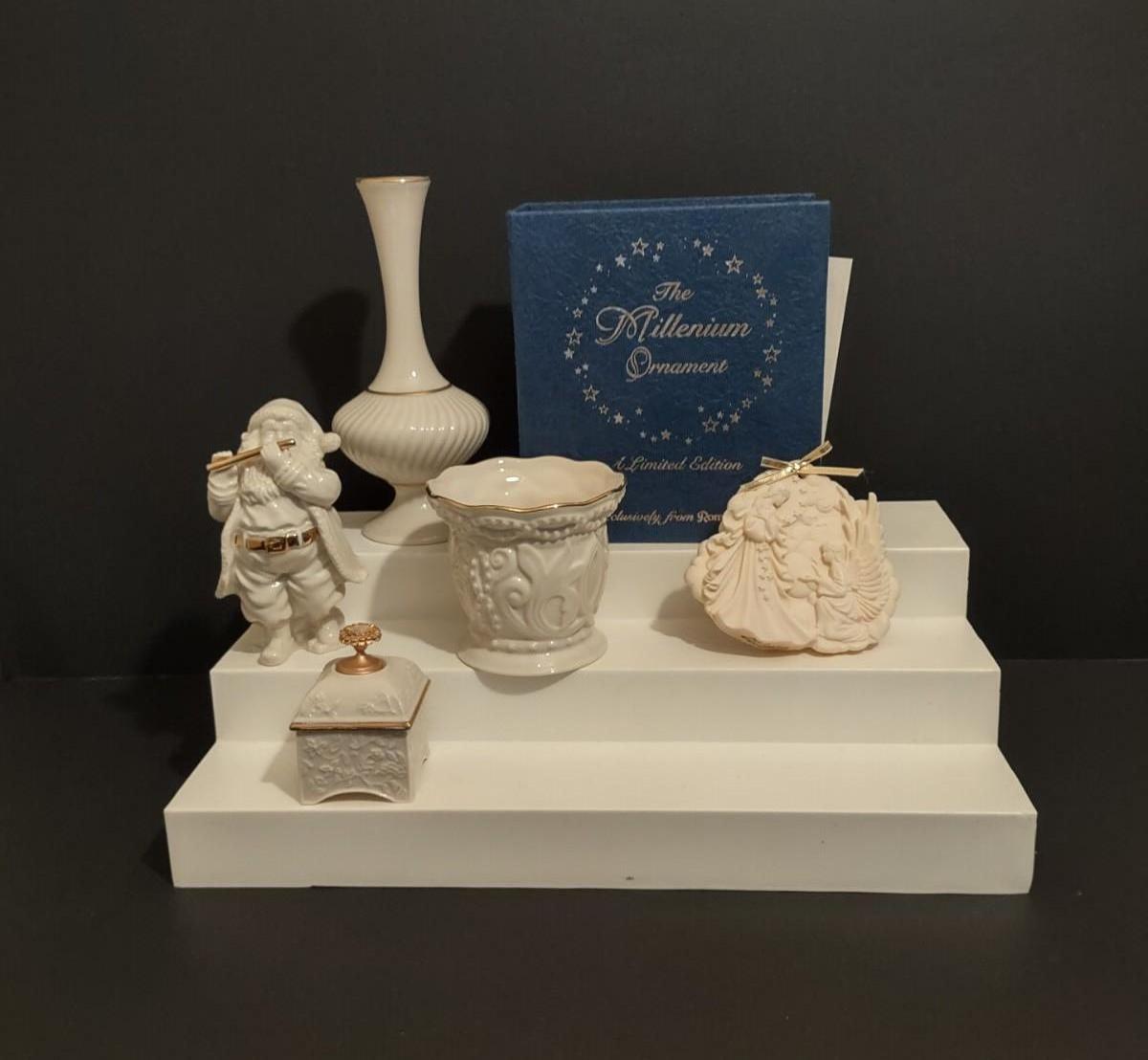 Lot 202: Lenox Millennium Ornament, Santa Figurine, Vase, Trinket Box & More