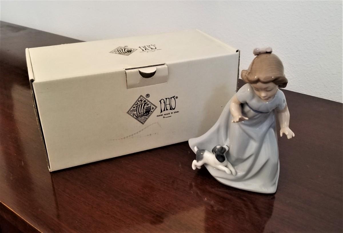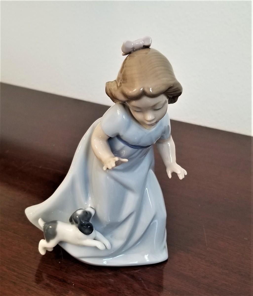 Girl with puppy - Lladro Nao figurine with original box. 7" tall - good condition.
