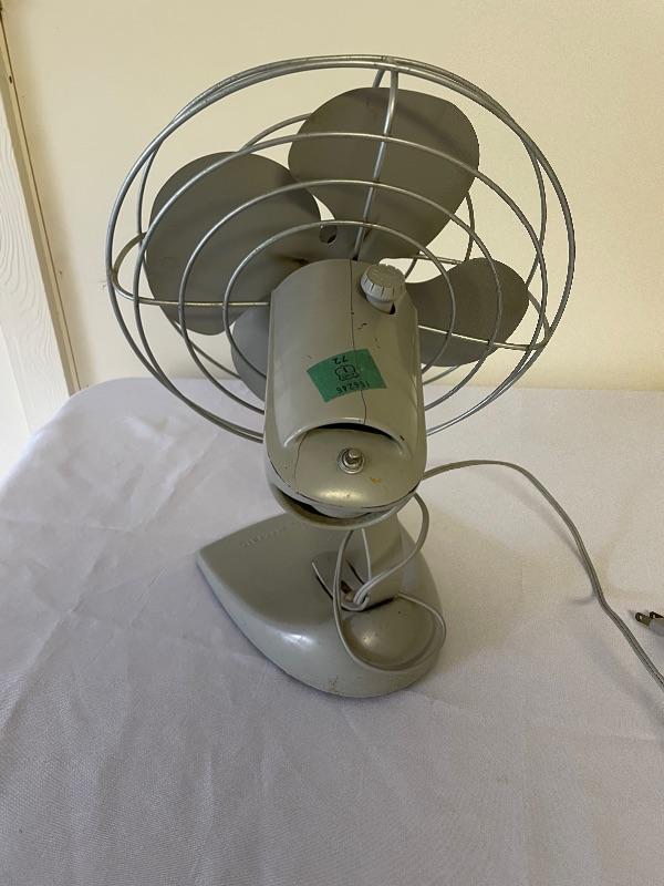 Look good while keeping cool with this mid-century oscillating desk fan by GE. This unit worked well when tested and stands about 14” high. Local pick up only.