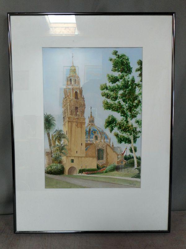 Lot 2026 - Signed Artist ''Balboa Park Museum of Man + Tower''