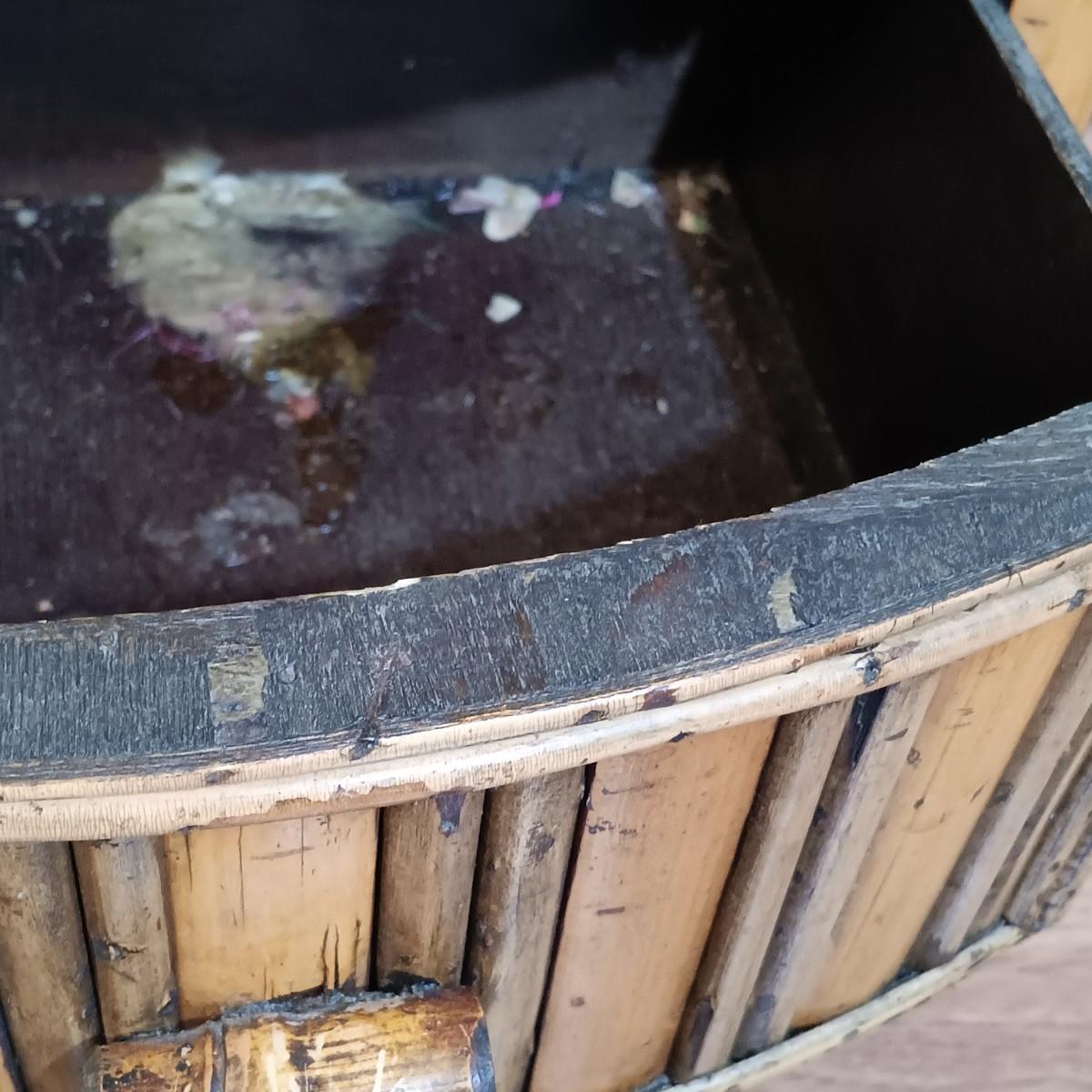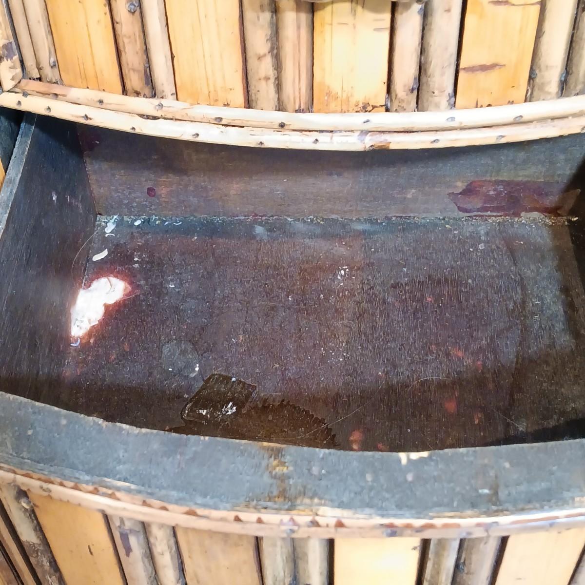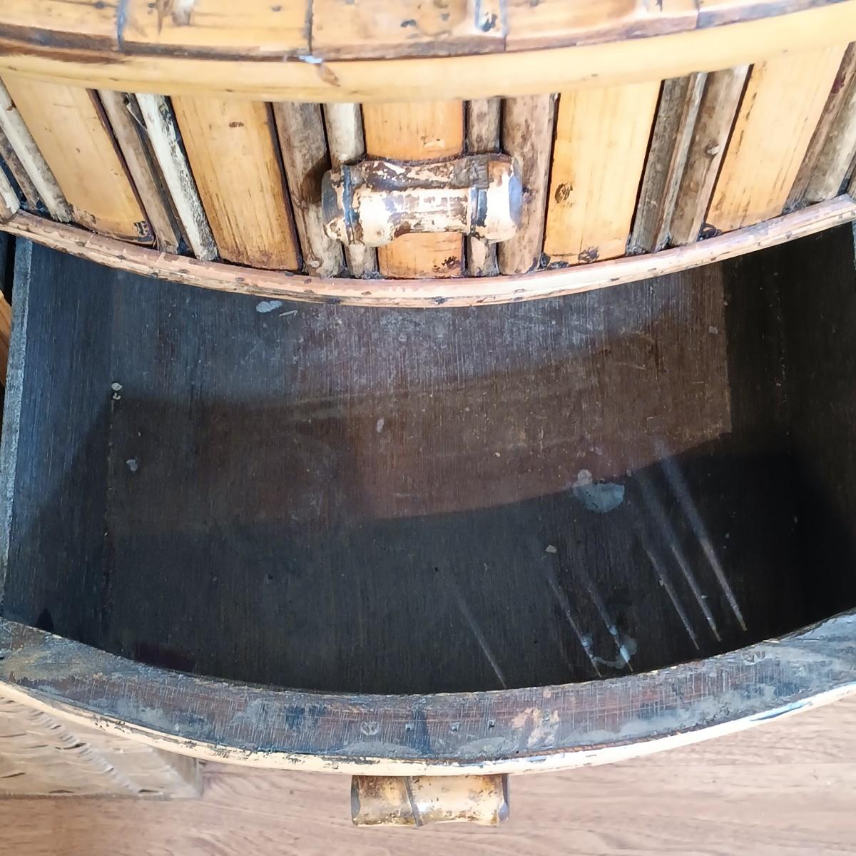 LOT 203: Bamboo and Rattan End Table with Wicker Hamper