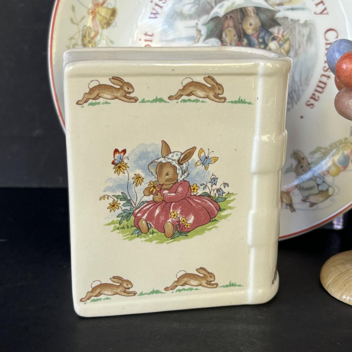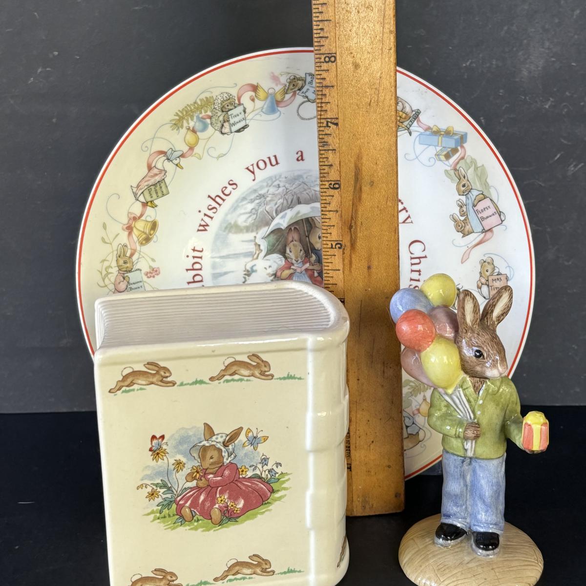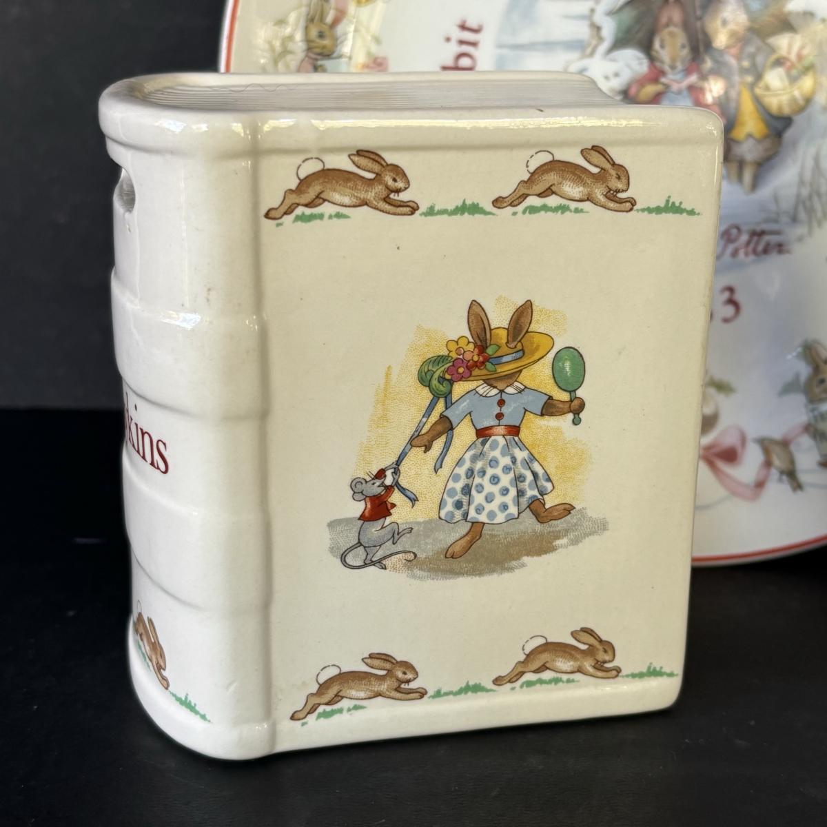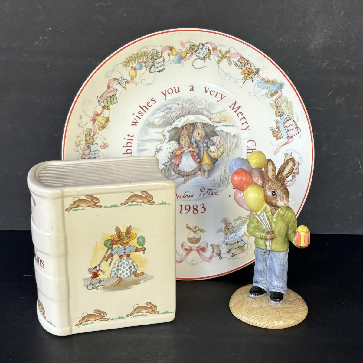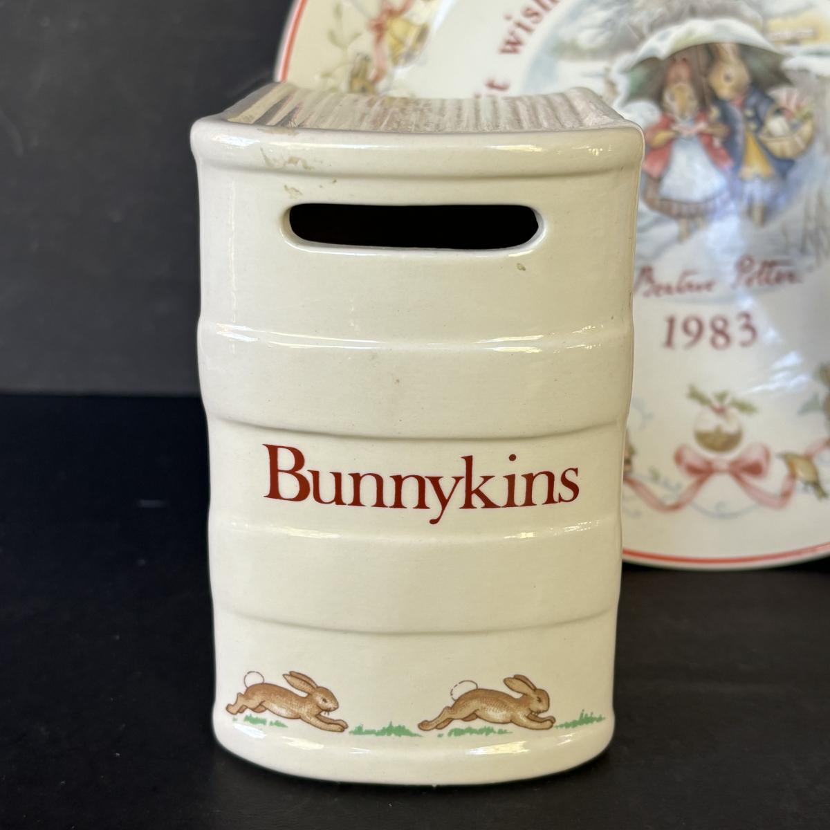 LOT 203: Royal Doulton Bunny Kins: Congratulations Figure, Bunny Kins Bank & Wedgewood Beatrix Potter Peter Rabbit Collectors Plate