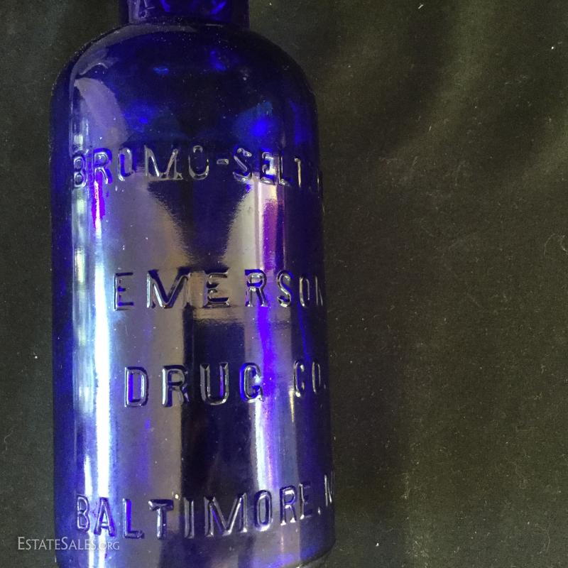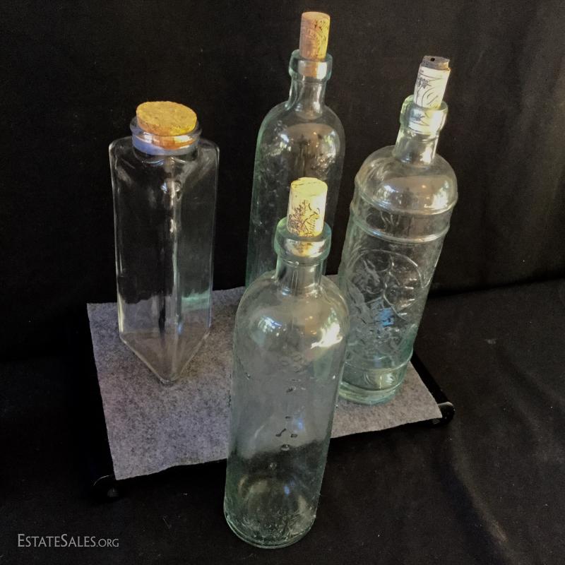 Gorgeous giant glass vase measures 17.5" tall x 13" wide. Also includes 1/2 liter wine carafe and a dark blue vintage bottle that says "Bromo-Seltzer Emerson Drug Co. Baltimore, MD". Wine bottles with corks are 13"tall. See photos. Shipping available or local pick up in Flat Rock, NC.