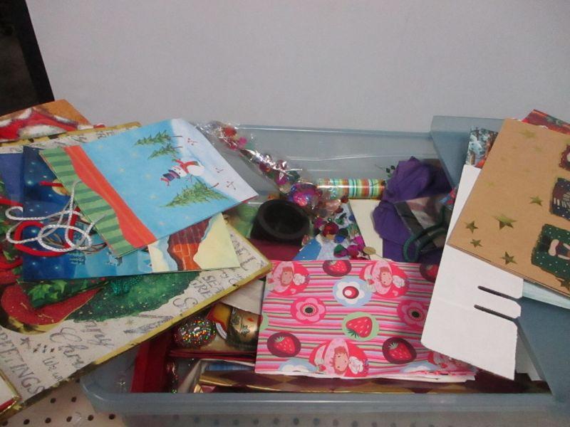 Lot 203 - Bin Full Of Holiday Bags Wrapping Paper