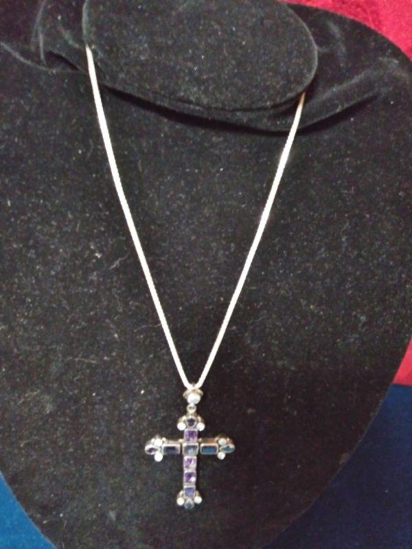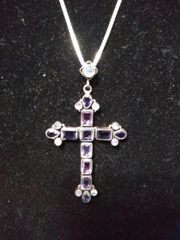 STERLING CROSS & CHAIN WITH AMETHYST STONES