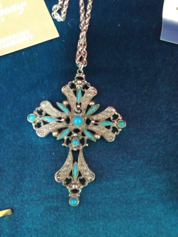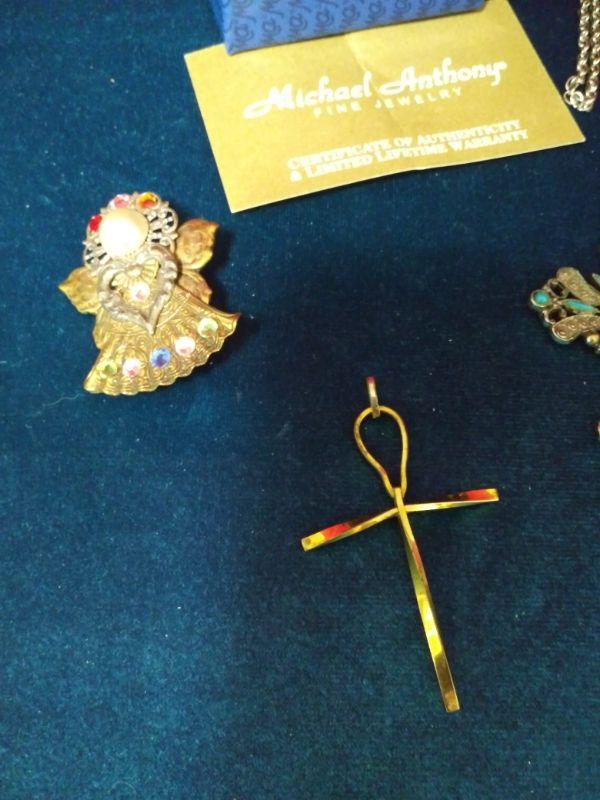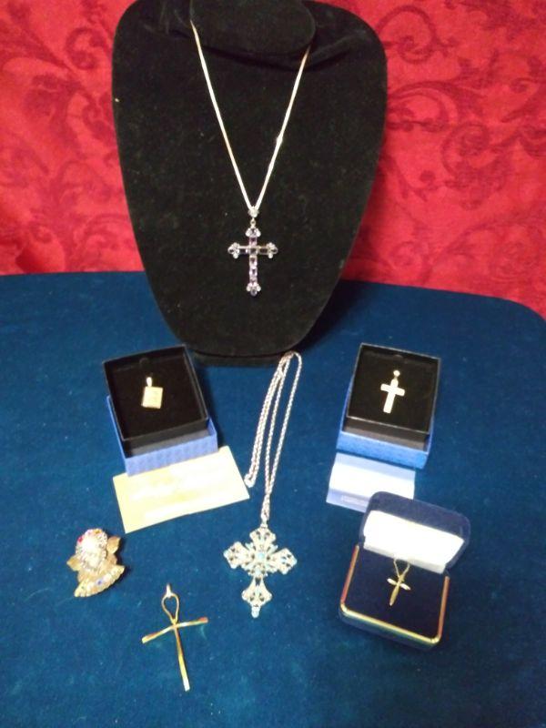 COSTUME CROSS ON CHAIN, ANGEL PIN AND SILVER CROSS PENDANT