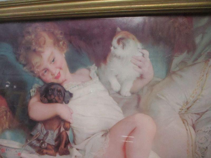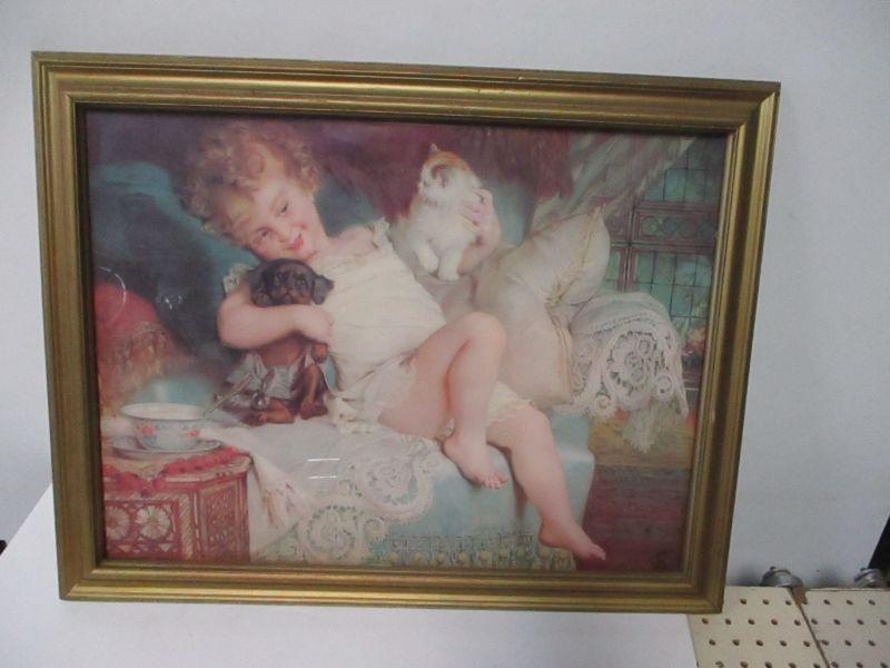 Lot 203 - "Pears" Framed Child & Pets Picture 27 1/2" x 21 1/2"