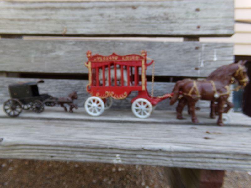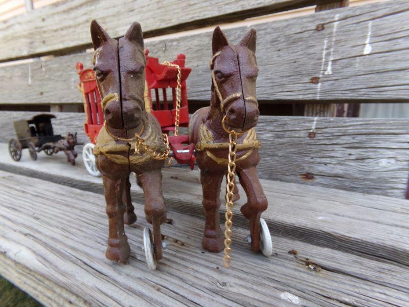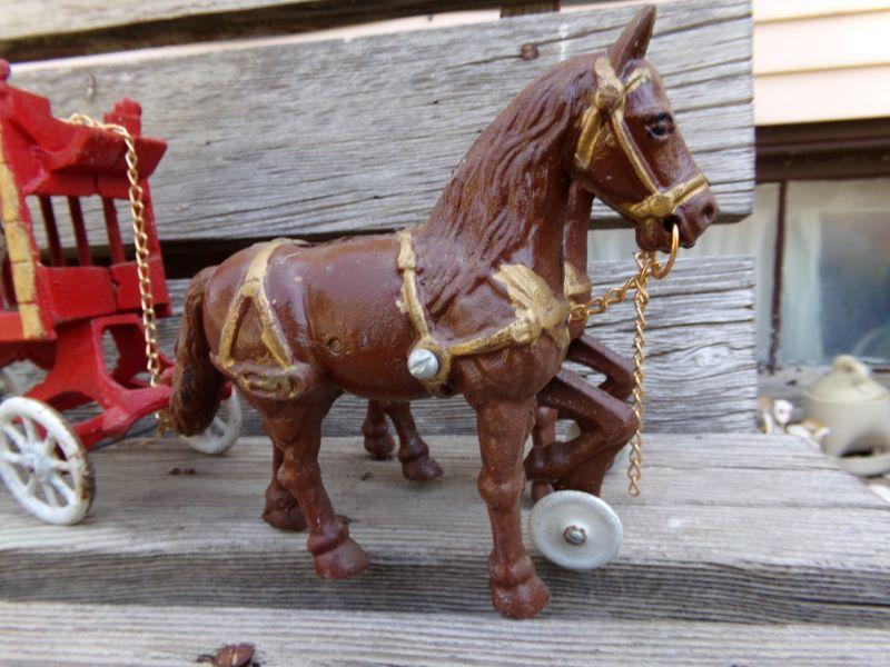 LOT 203  CAST IRON HORSE DRAWN TOYS