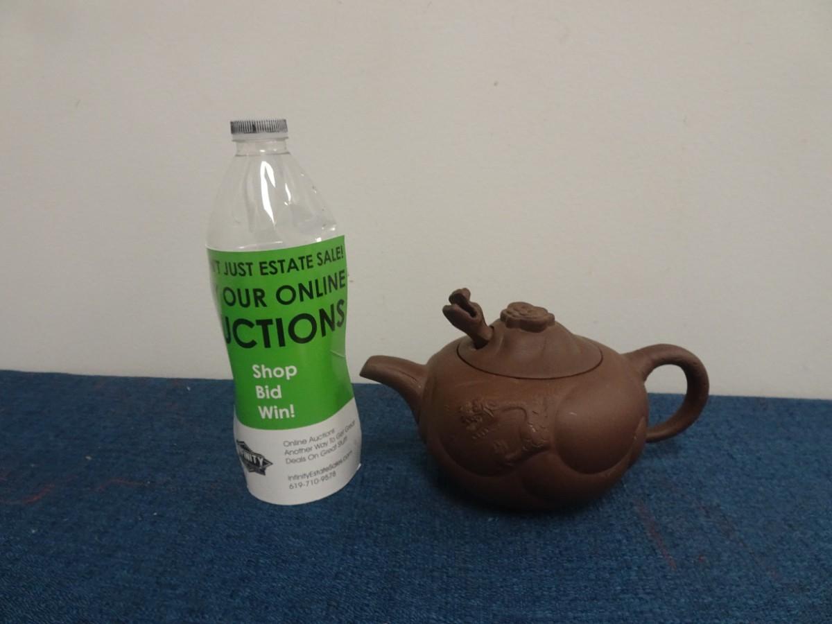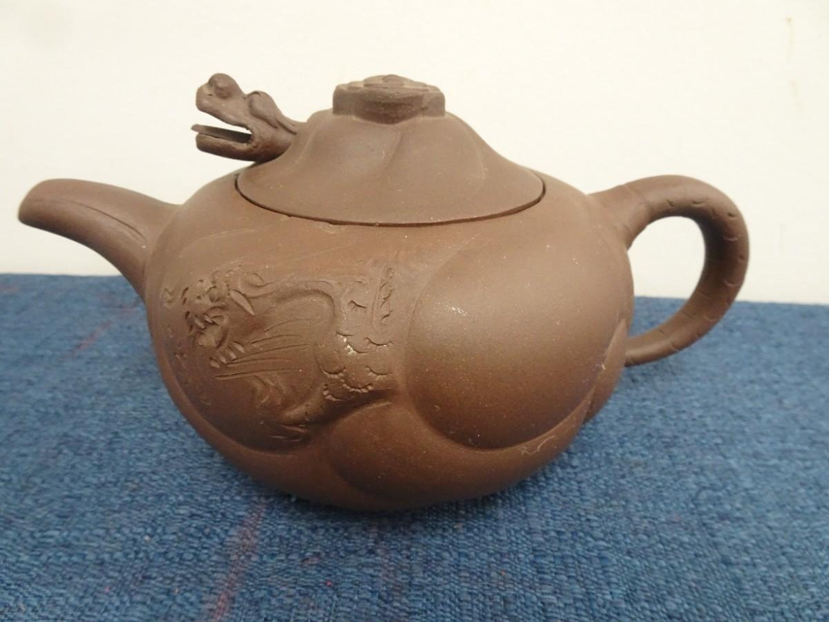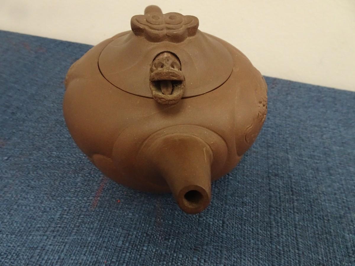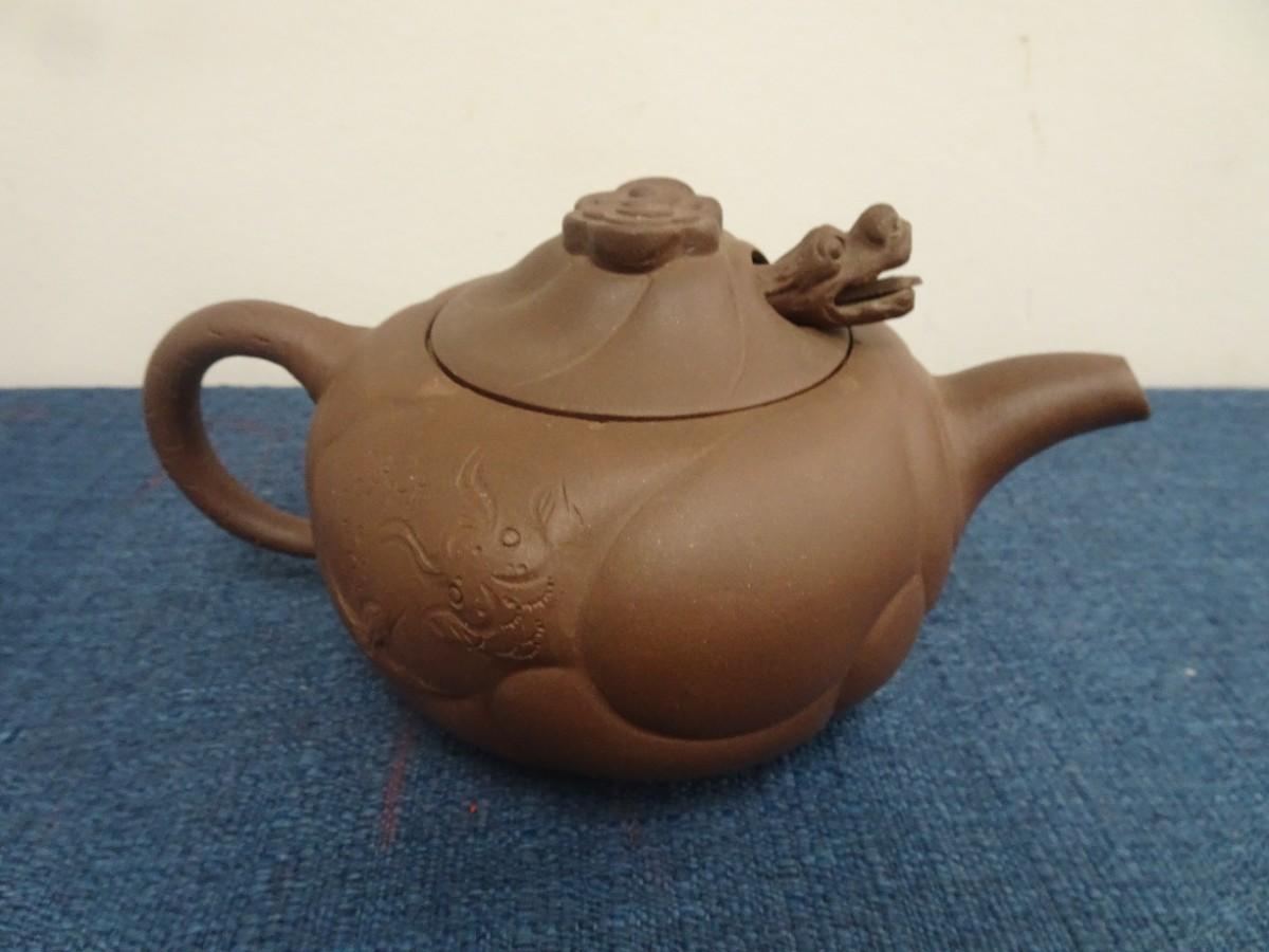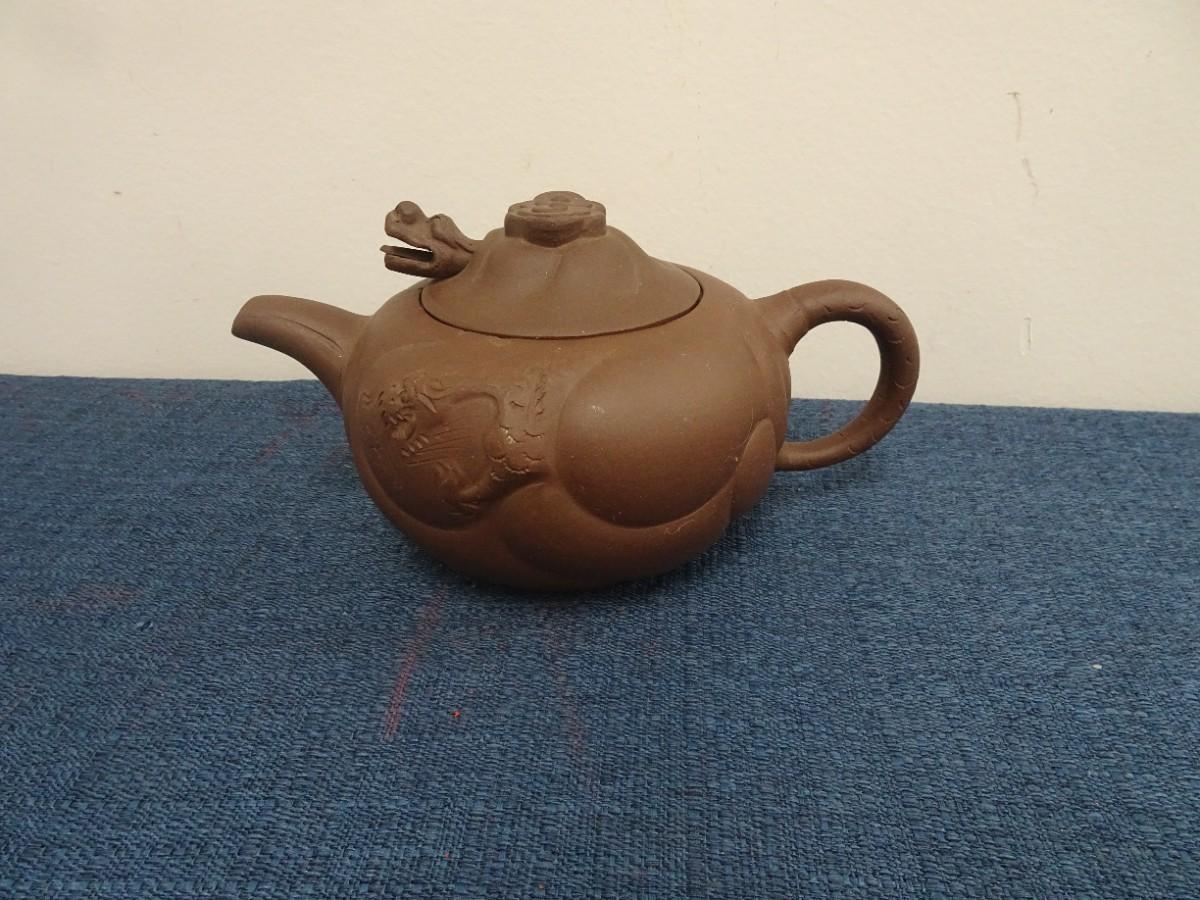 LOT 203. CHINESE DRAGON CLAY TEA POT