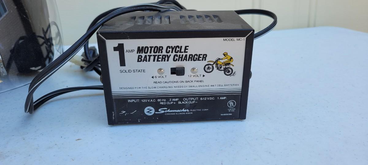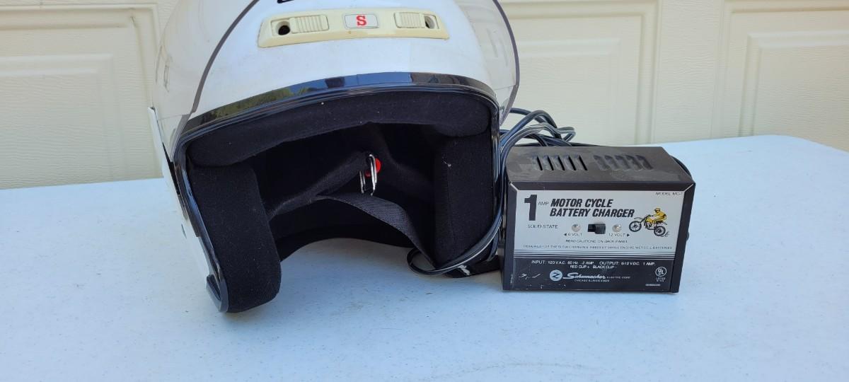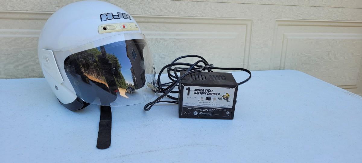 Lot 203: Vintage HJC Model FG-23 Motorcycle Helmet + 1 Amp Motorcycle Tricke Charger