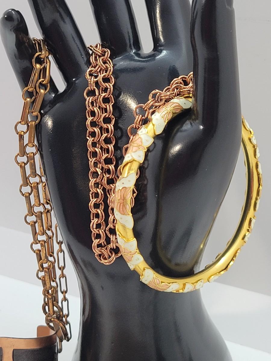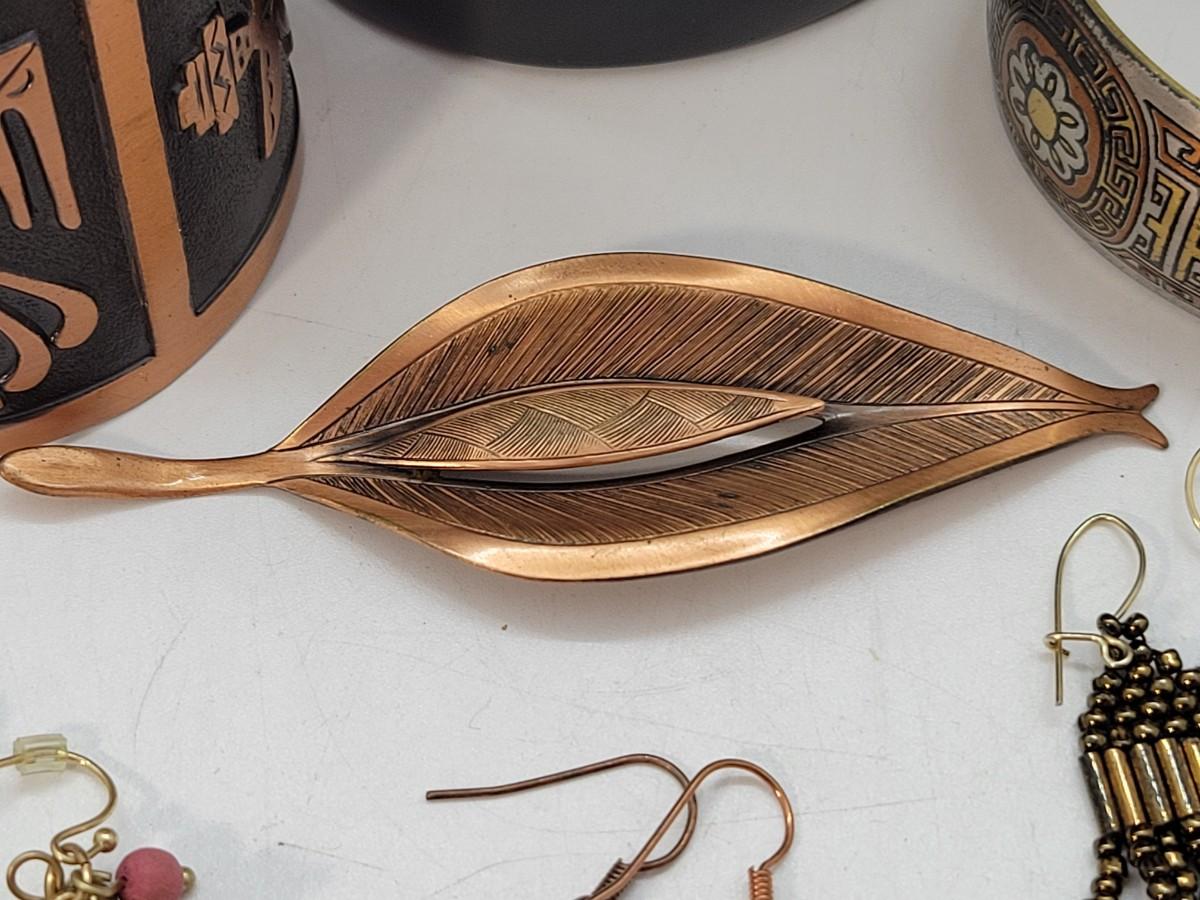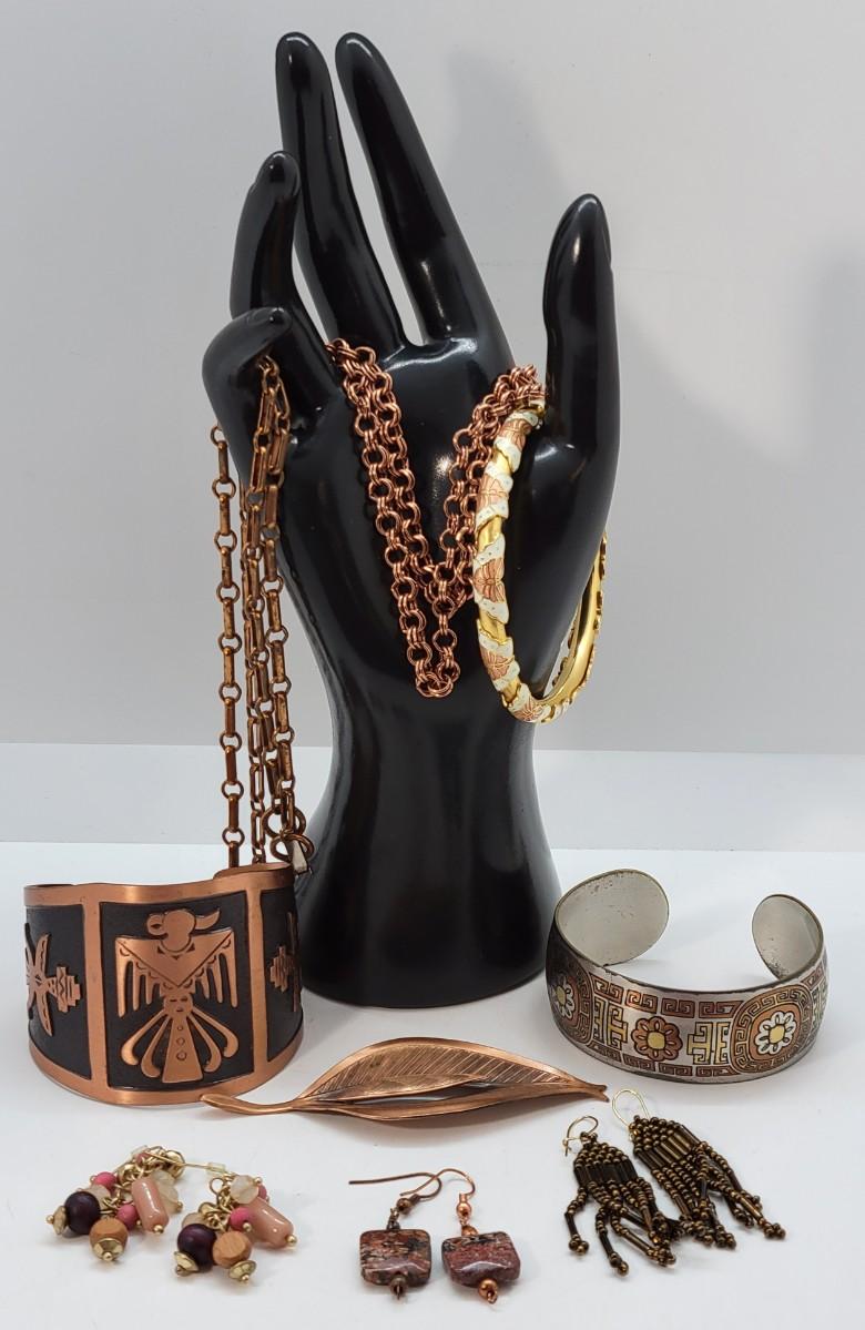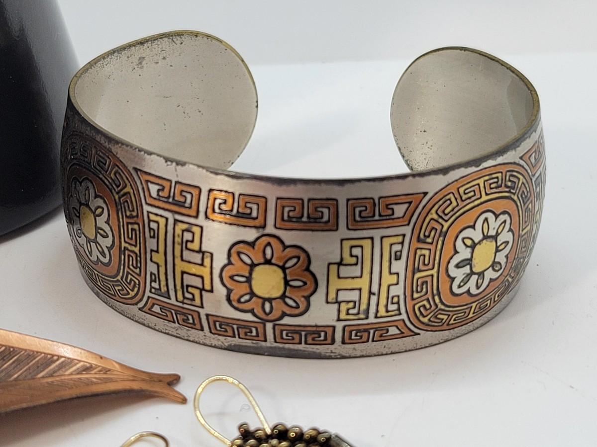 Lot 203: Reed and Barton Damascene Solid Cuff and Copper Southwestern cuff and more!