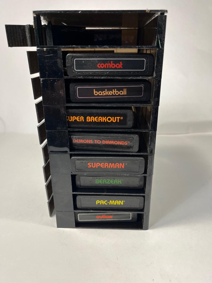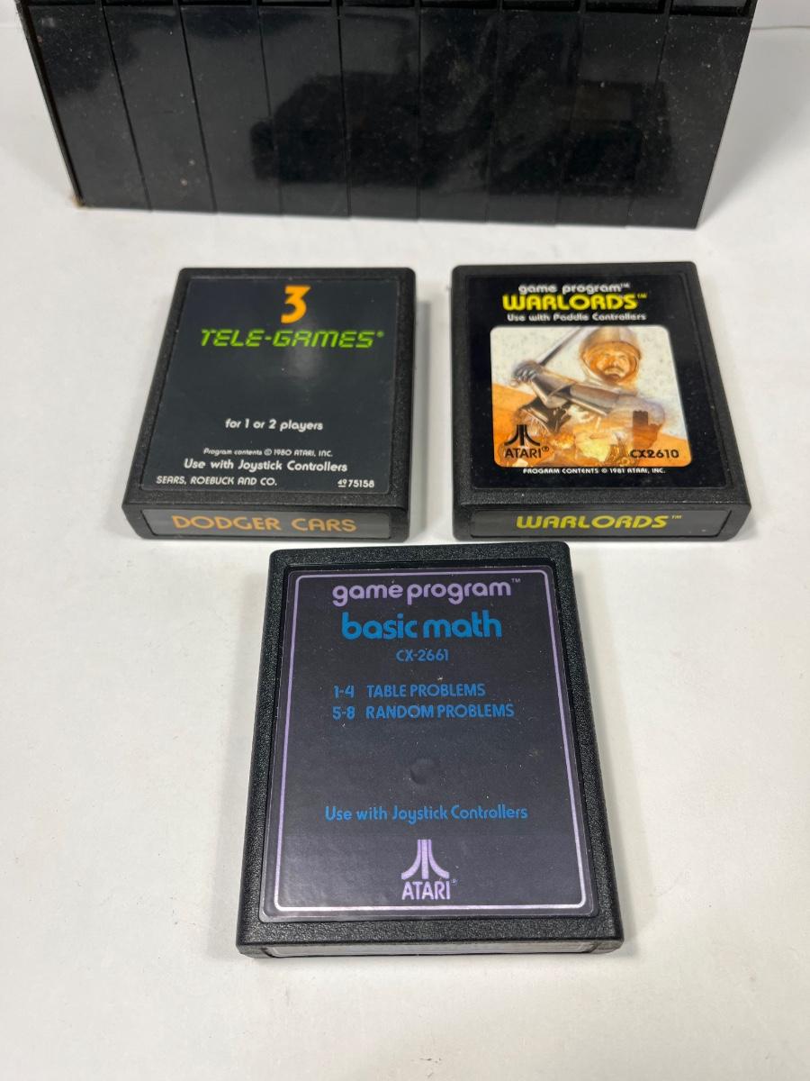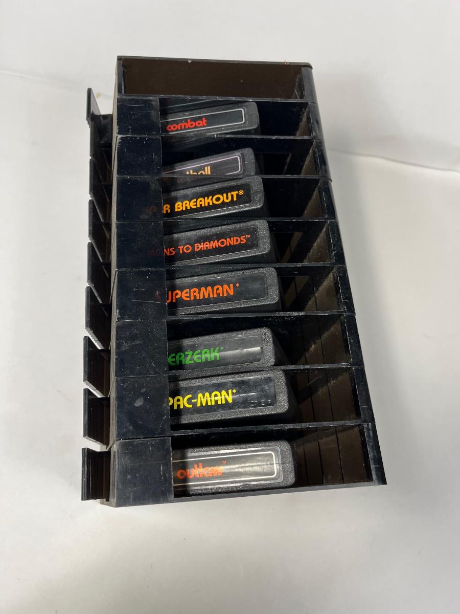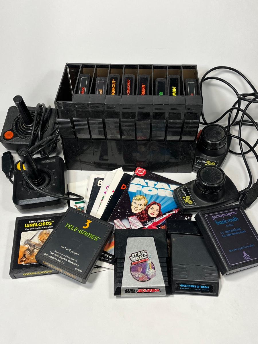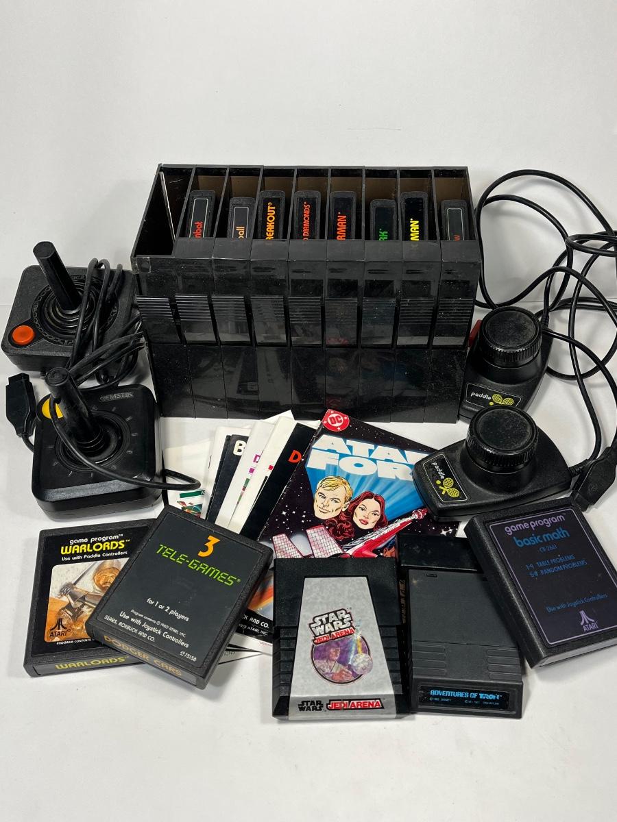 LOT 203: Vintage Atari 2600 Games, Instructions, Holder, Controllers - Pacman, Star Wars + More