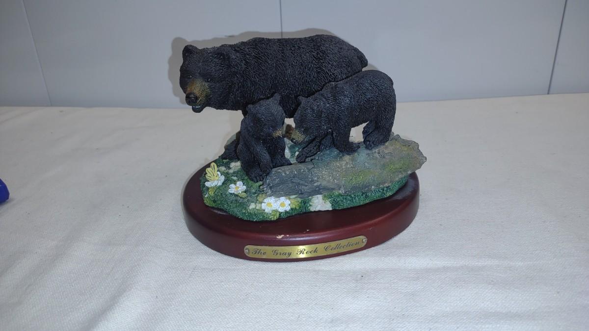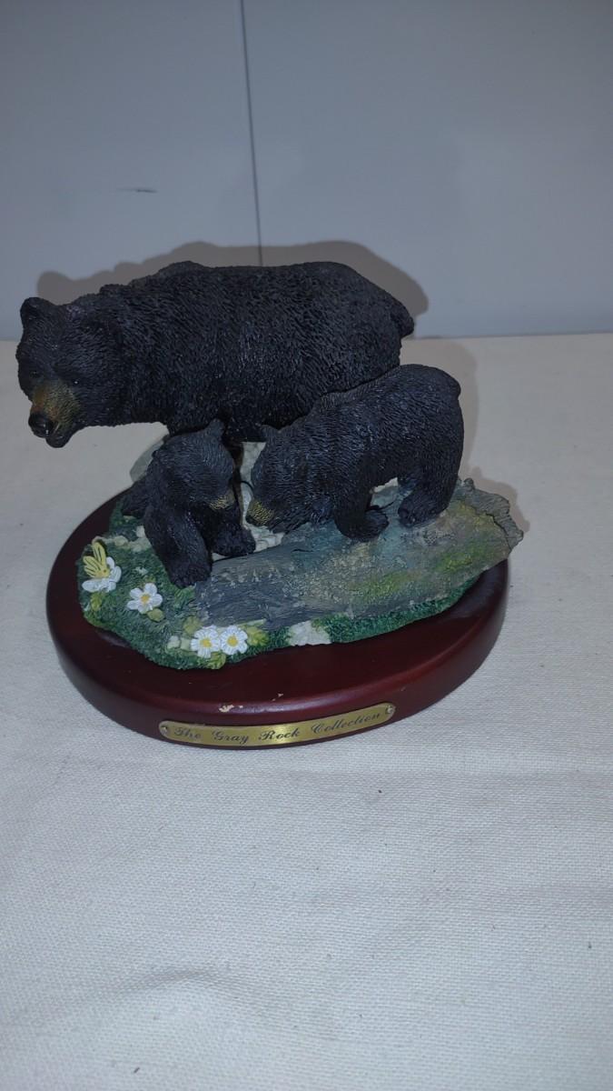 THIS IS FROM THE GRAY ROCK COLLECTION. IT IS A MOTHER BEAR AND TWO SMALL CUBS IN A GRASSY FIELD.