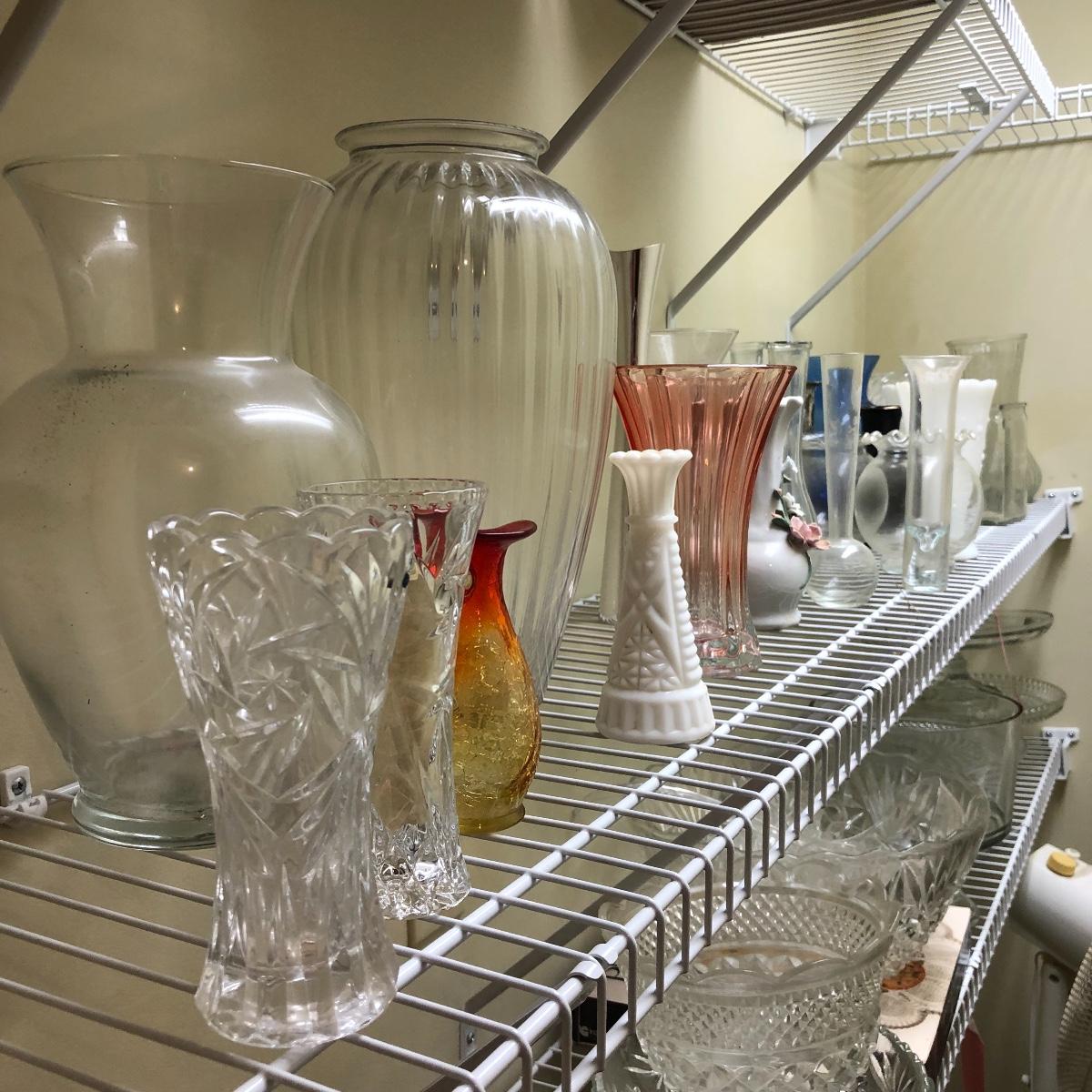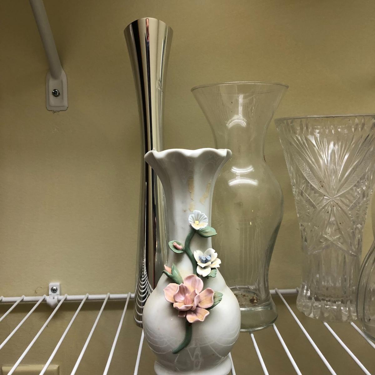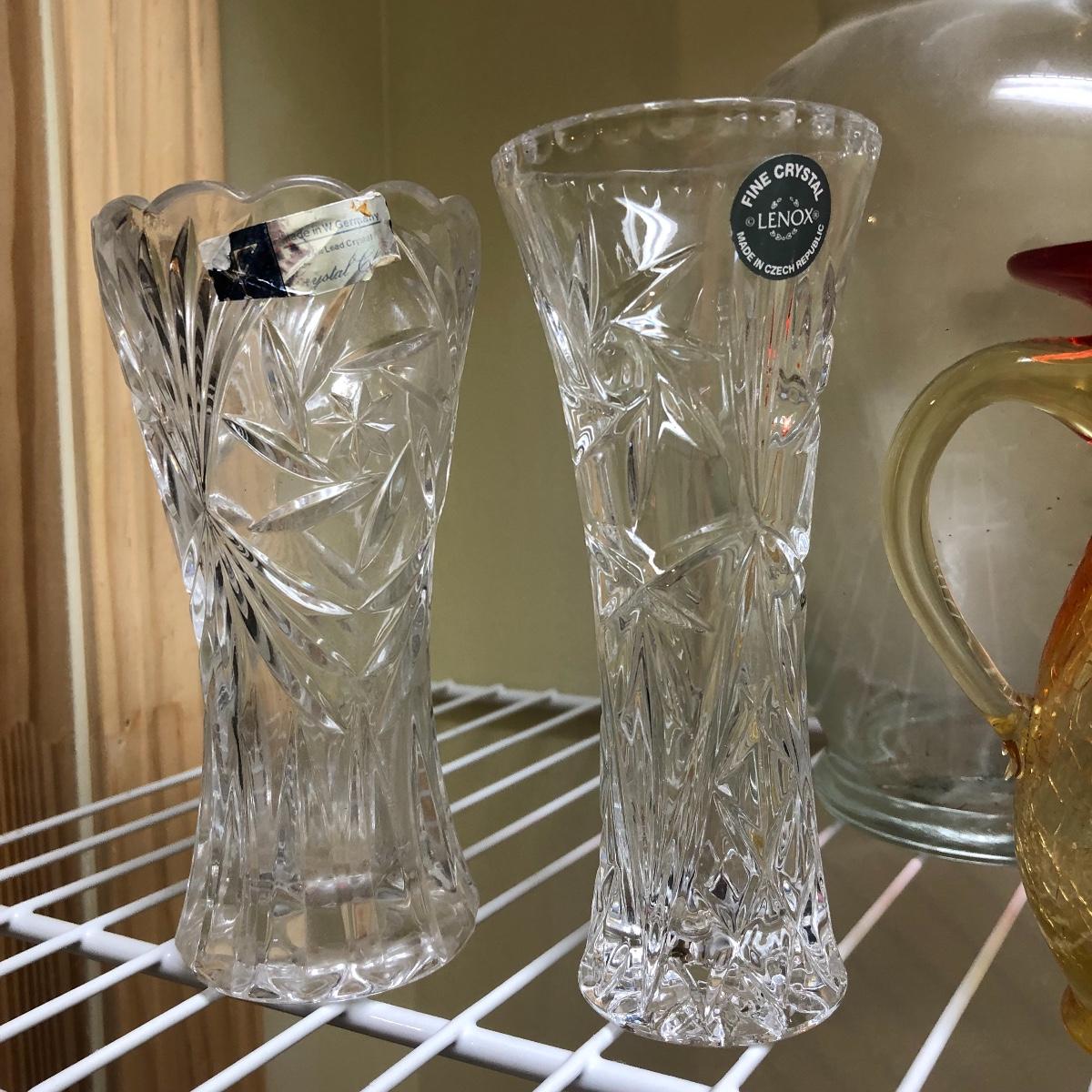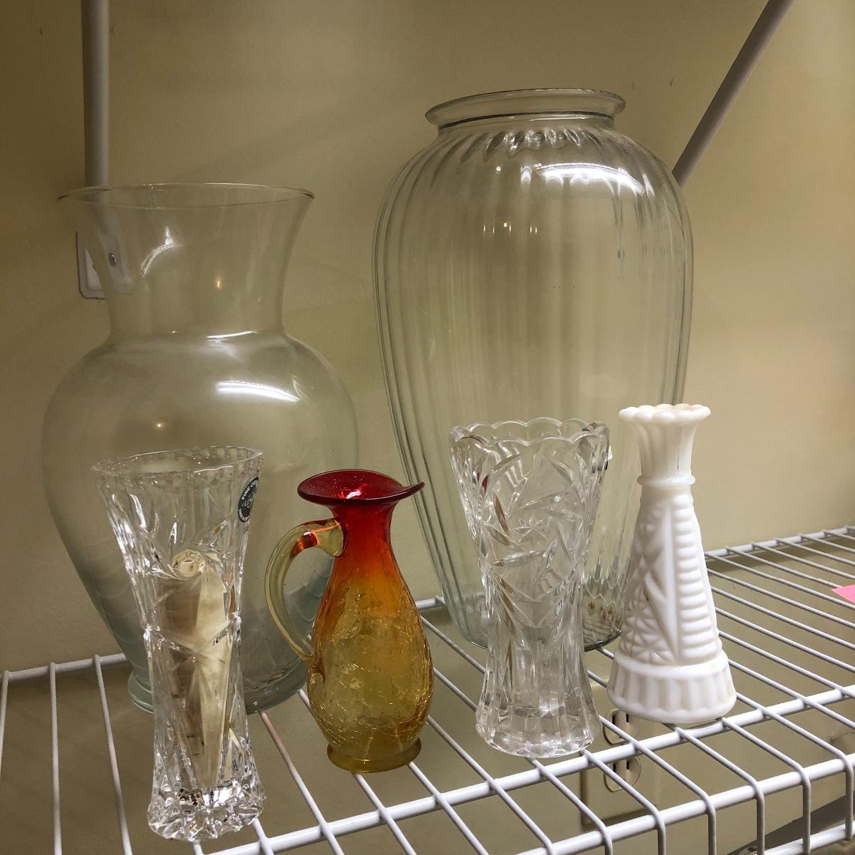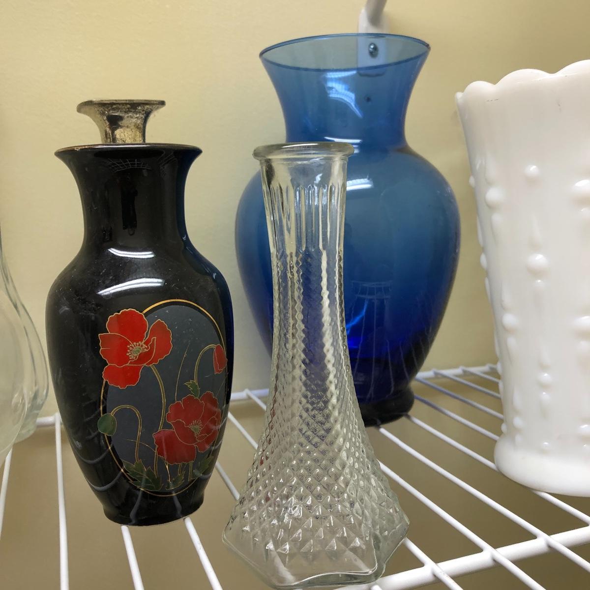 Never want for a bud or flower vase again! From milk glass to crystal, this lot will meet all of your flower needs! It contains eleven bud vases, two Lenox crystal vases and sixteen vases - two which are milk glass! Lenox vase measures 2.5”D x 6” tall.