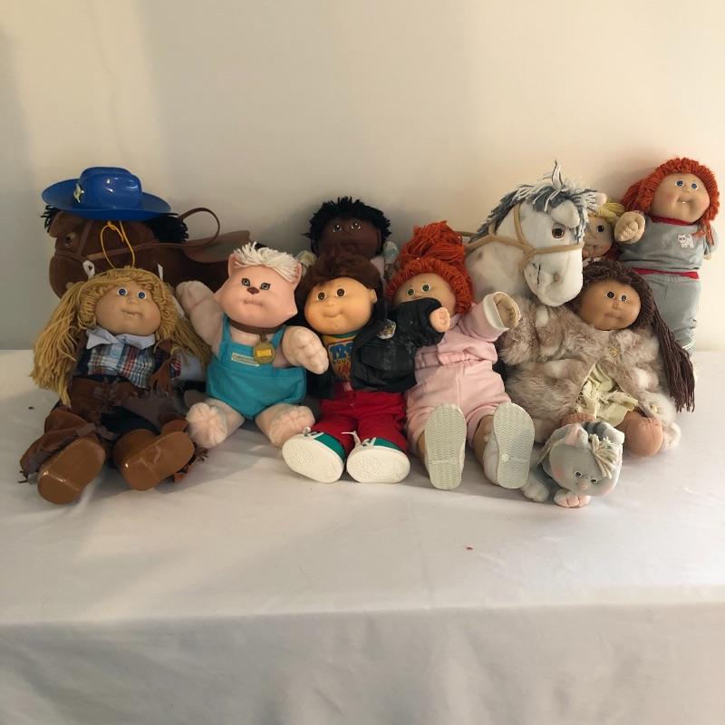 Give your child a collection of Cabbage Patch dolls and more. Lot includes assortment of Cabbage Patch dolls, horse and accessories also includes dolls that are not Cabbage Patch. Also includes a variety of doll clothing in many styles and sizes.