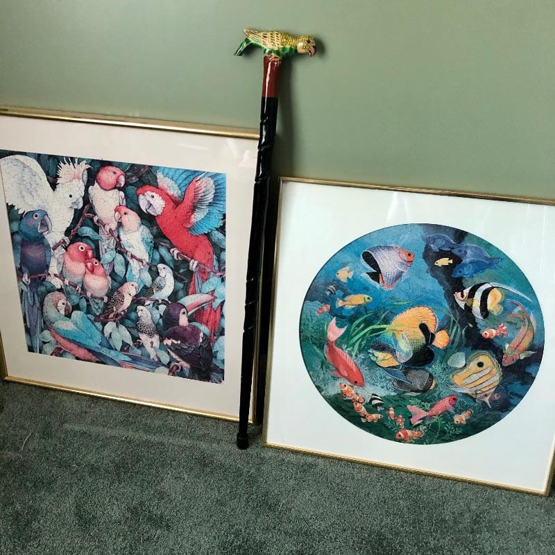 Lot 203 -Parrot Walking Stick and Framed Puzzles