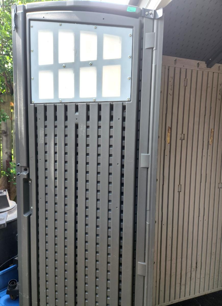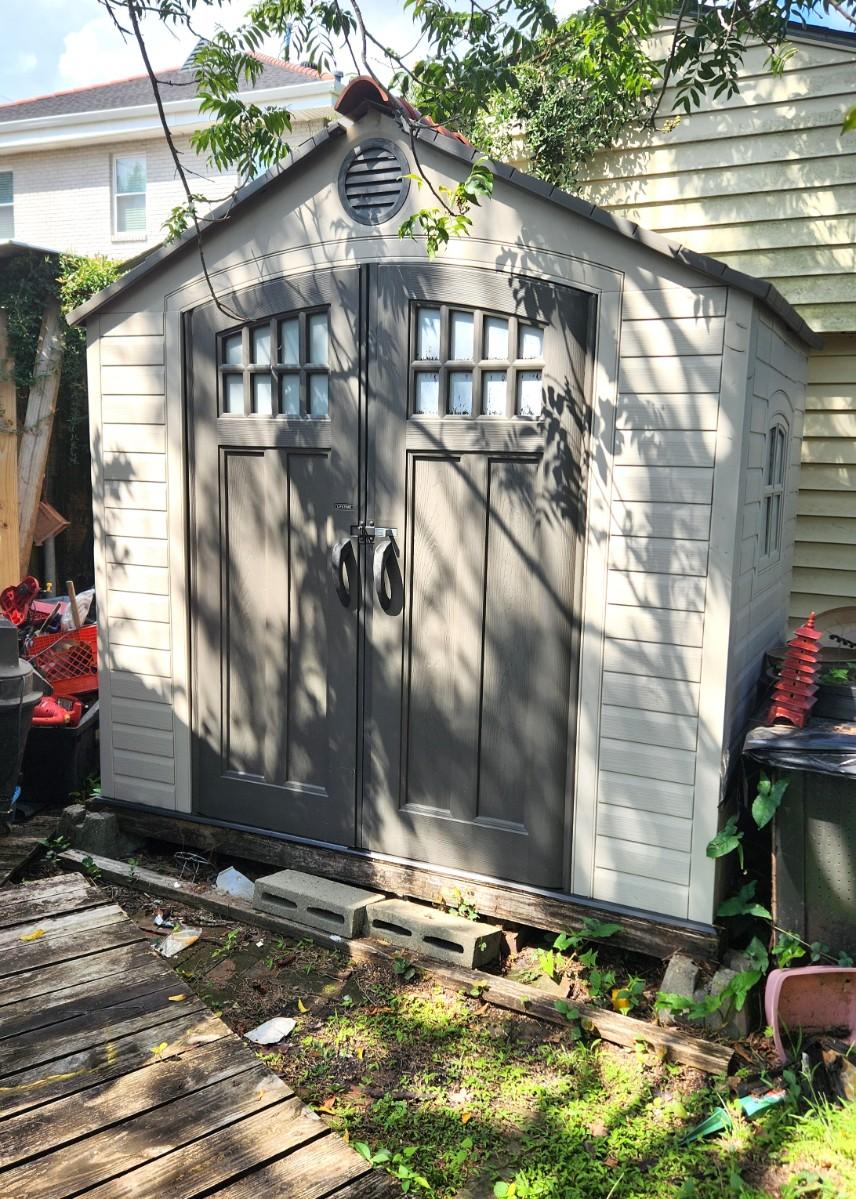 These garden/utility sheds sell at Loew's and Home Depot for silly amounts of money - heavy all weather, take-apart shed, measures 58" deep, 92" across, 8 feet tall. The owner numbered the panels, so easy take apart, put back together on your property. Can be locked with a padlock. Good used condition. If you purchase this you are responsible for taking apart and moving it.