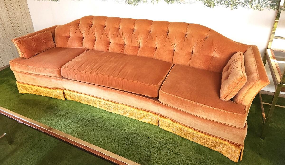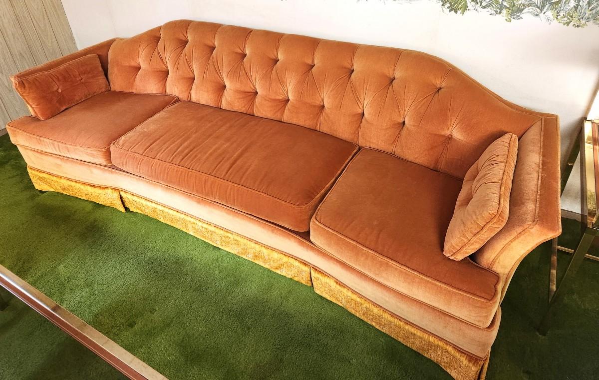Lot #203 MCM Burnt Orange Velveteen Sofa