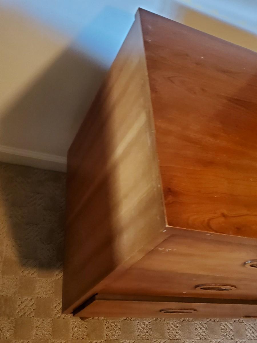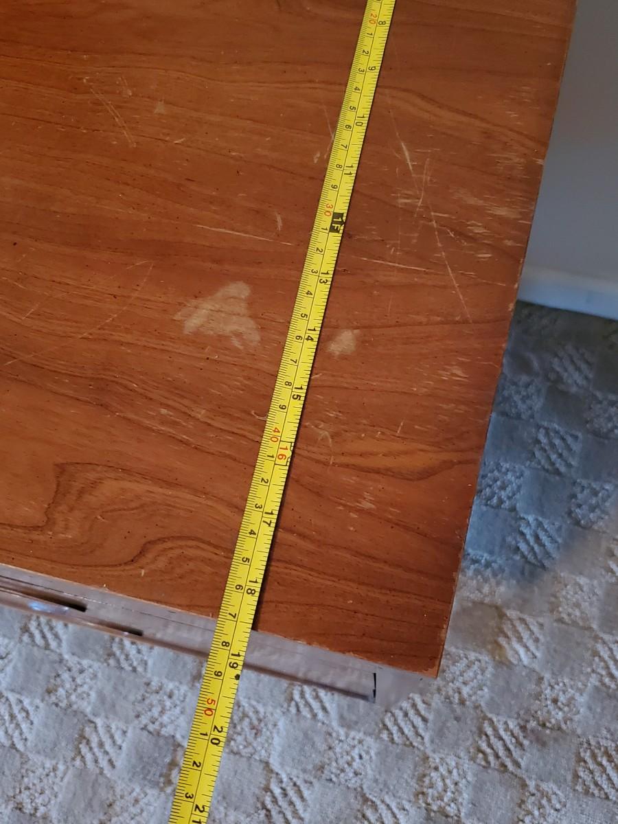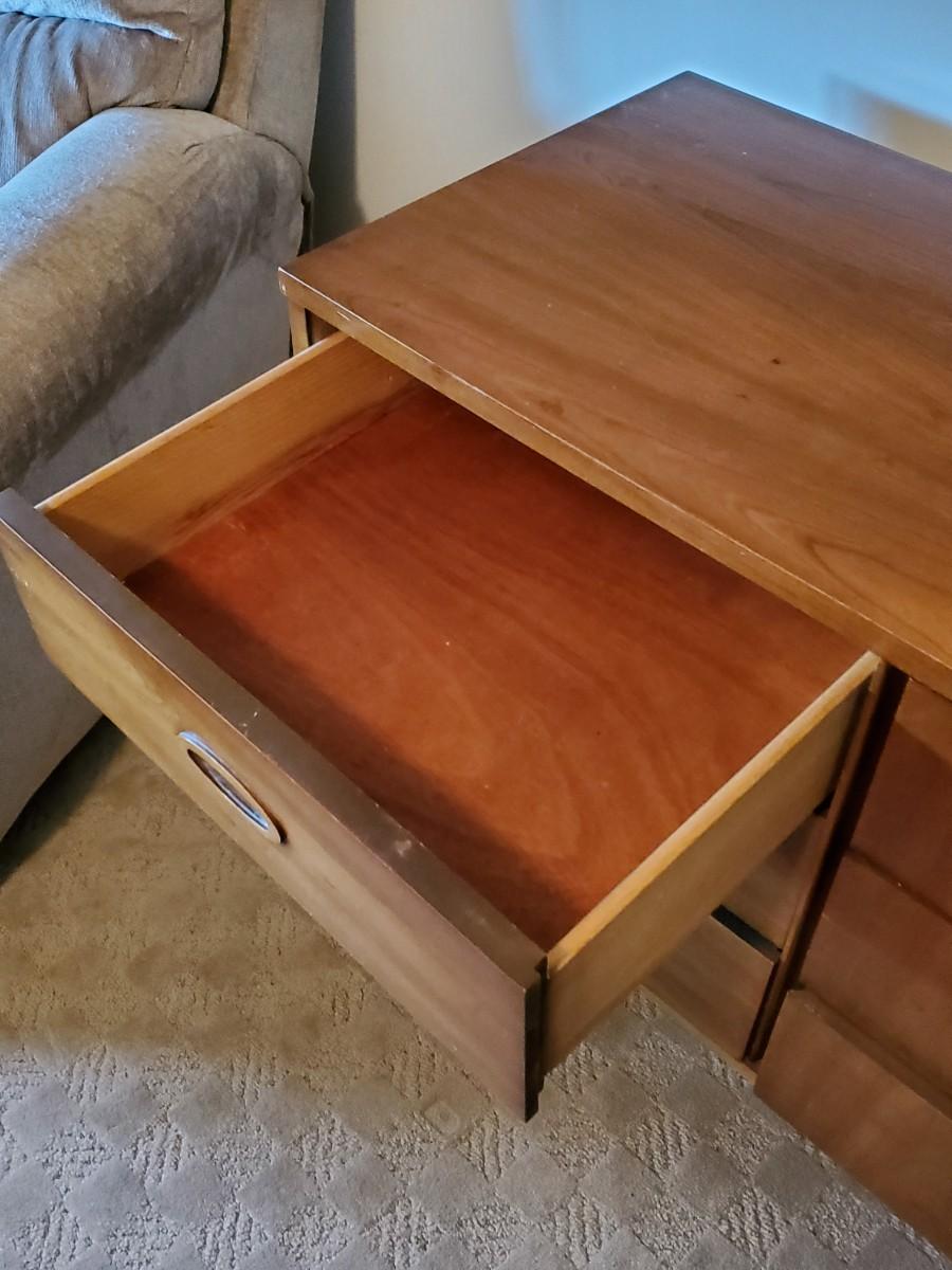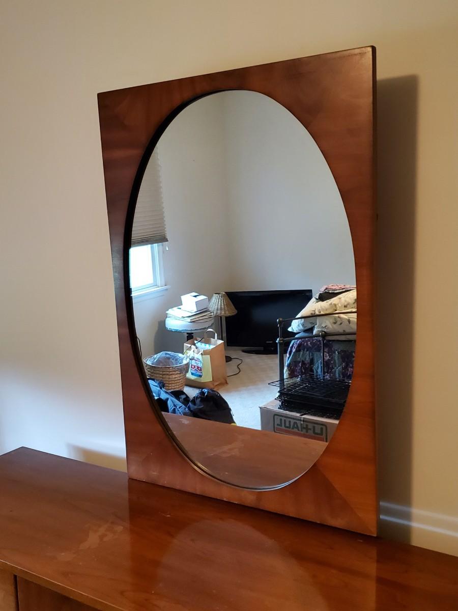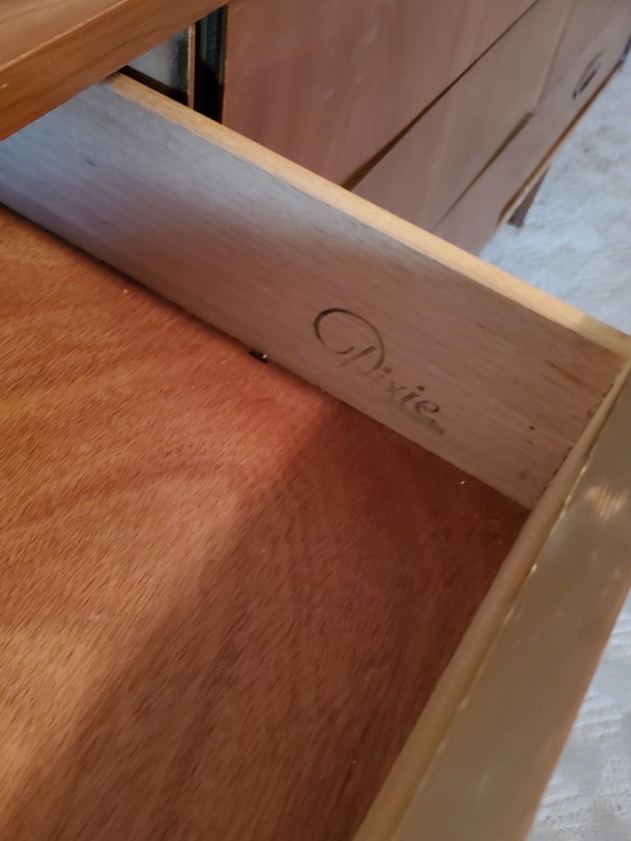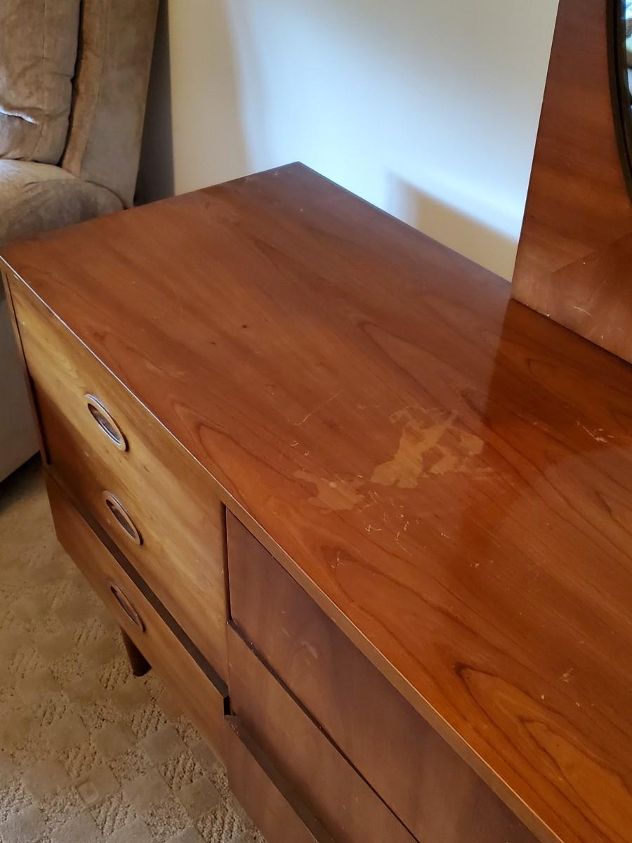 This piece is gorgeous and has great lines. It also has the wood cut-outs at the bottom. This does have some wear to the top and could be used as-is or refinished. Perfect for a dresser, or remove the mirror and use as media console. The mirror would look even better horizontal mounted on wall! Please see all pictures as they are the best representation of the items. The pictures show condition, measurements if taken, and what is included in the lot. Due to the large amount that we photograph and the time frame, we are not always able to take measurements. All items unless noted, are pre-owned and have been used. If you purchased furniture, you must bring help. We do not allow one person to carry large furniture out on their own. Bring help, tools and a truck for the safety of our client’s homes, and your personal safety. Any damages that result to the property including walls, and floors due to moving of the furniture will be charged to the buyer. Company policy. Thank you.