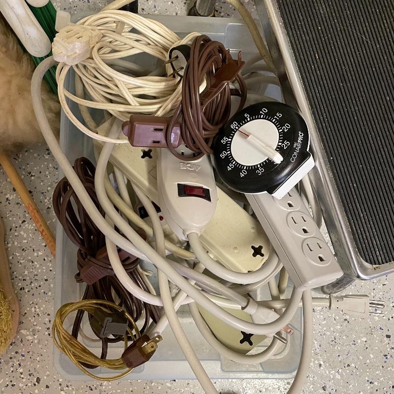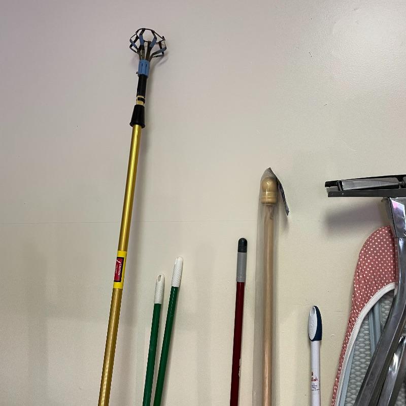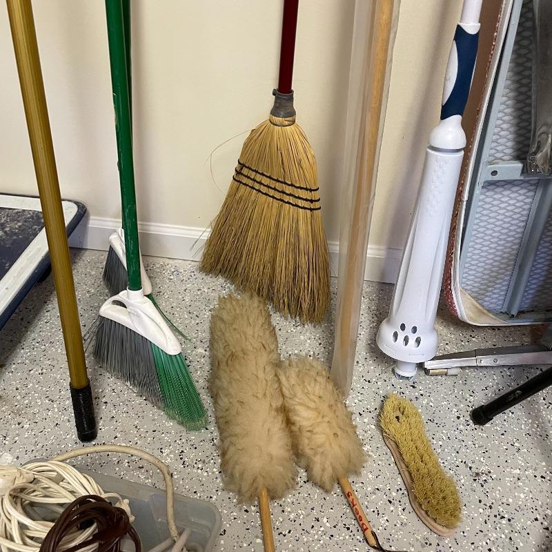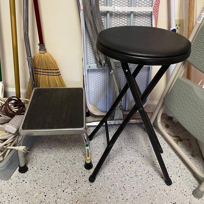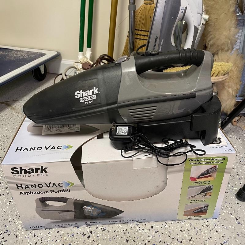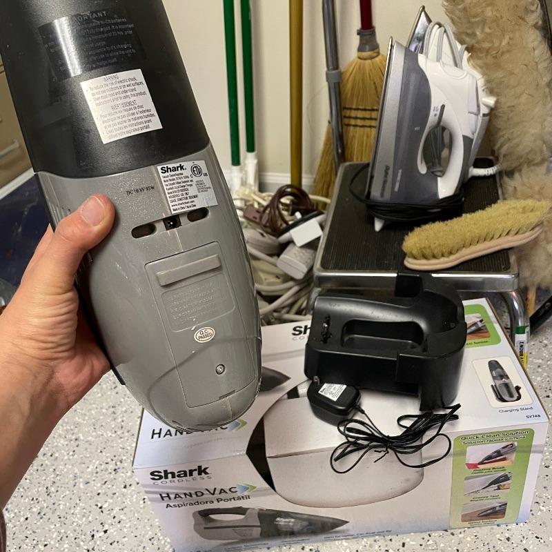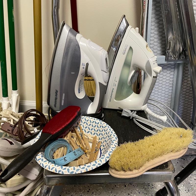 Start or upgrade your household necessities. Lot features a cordless Shark hand vac with charger and a Rowenta Professional Luxe Iron with vintage ironing board. Other items to make upkeep easier include step ladders, bulb changers, dusters, extension and power cords. All electric items turned on when tested. See images. Local pick up only.