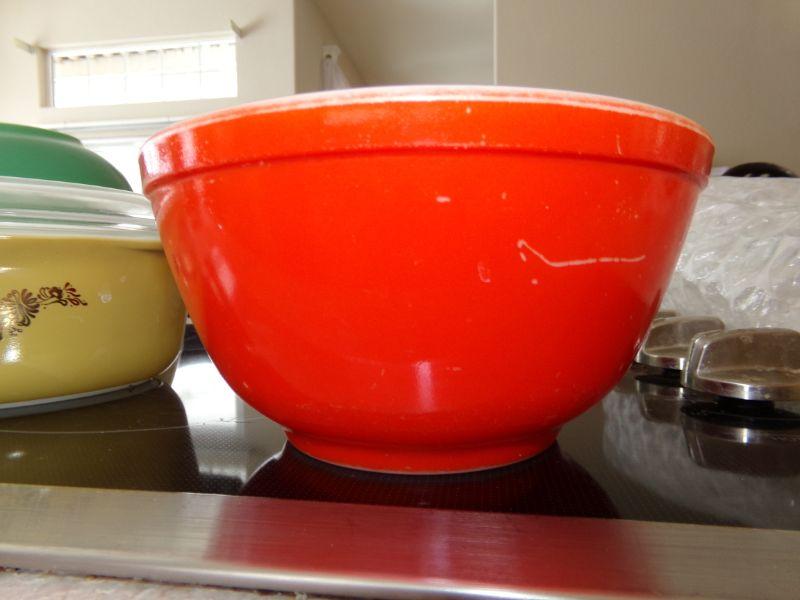 THE RED BOWL HAS SOME SCRATCHES