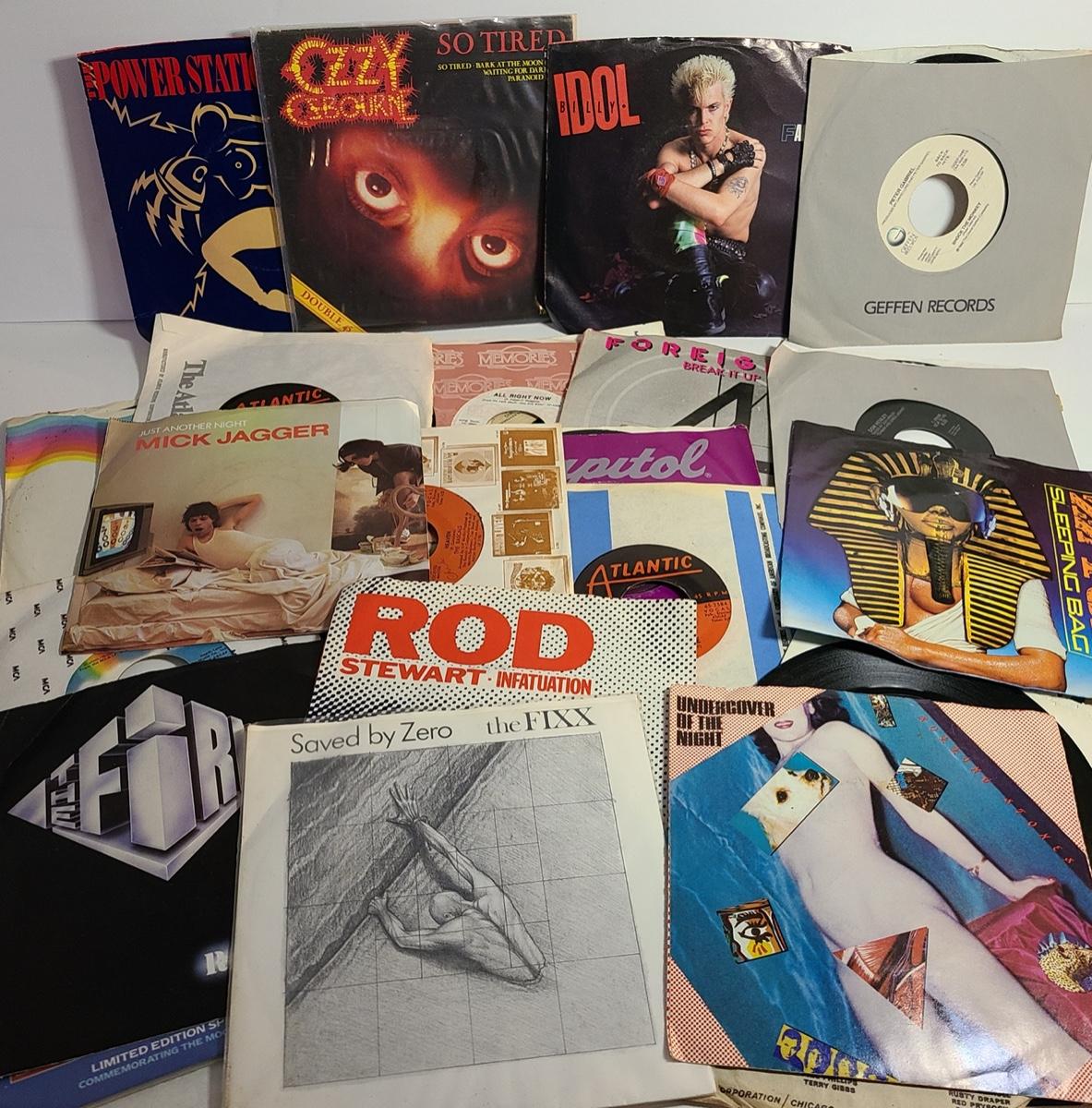 Lot 203: Vintage Lot of 45's Records: Ozzy, Billy Idol, Mick Jagger, ZZ Top and More