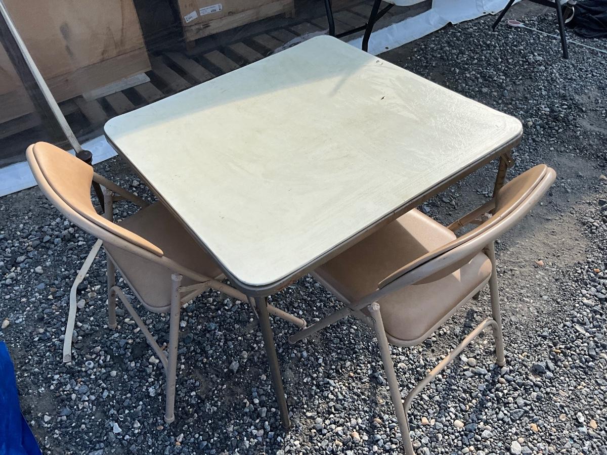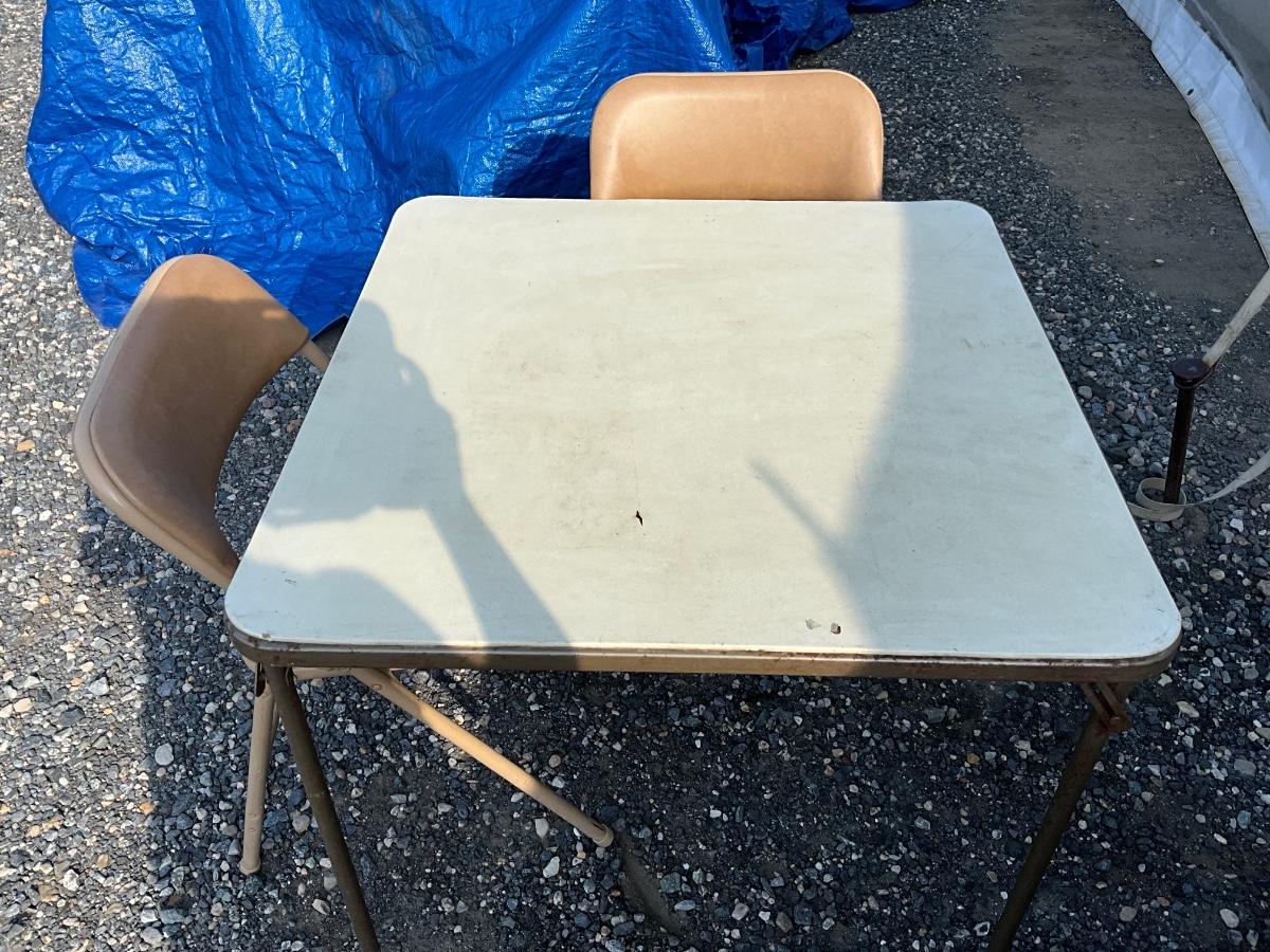 Lot# 203 Vintage Folding Card table & Two Vintage Folding Metal Chairs