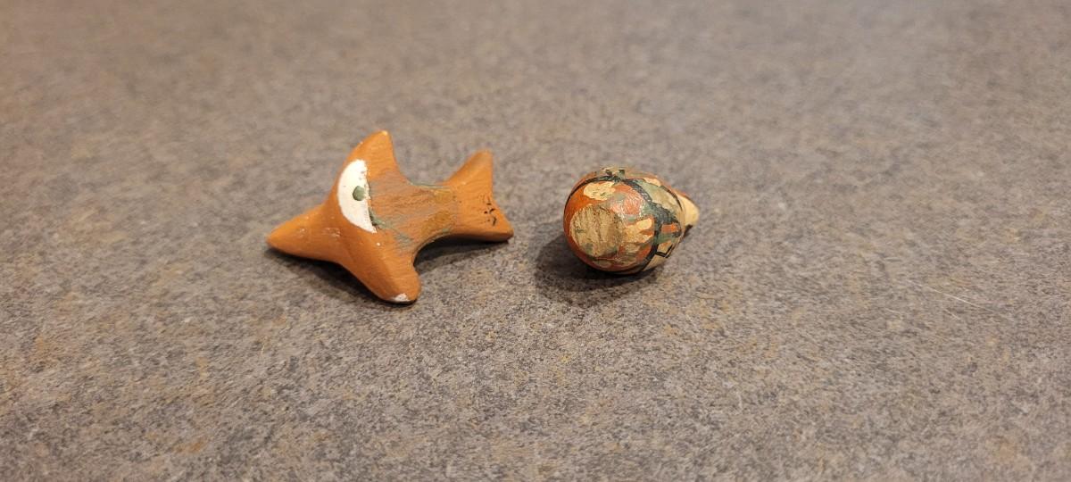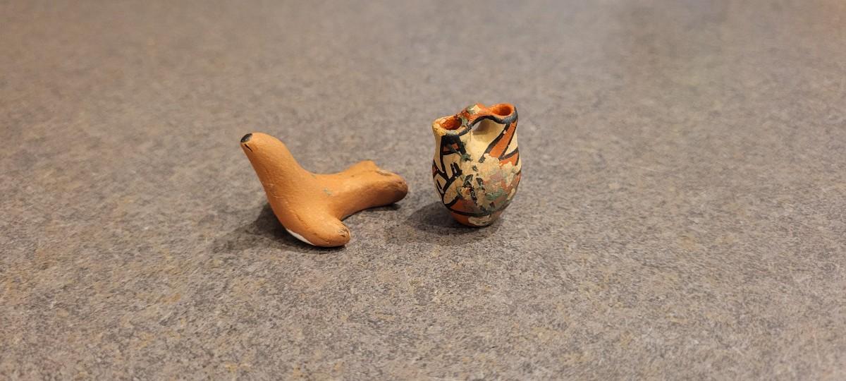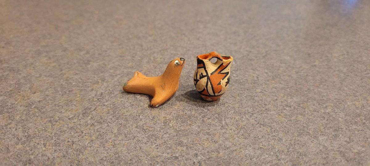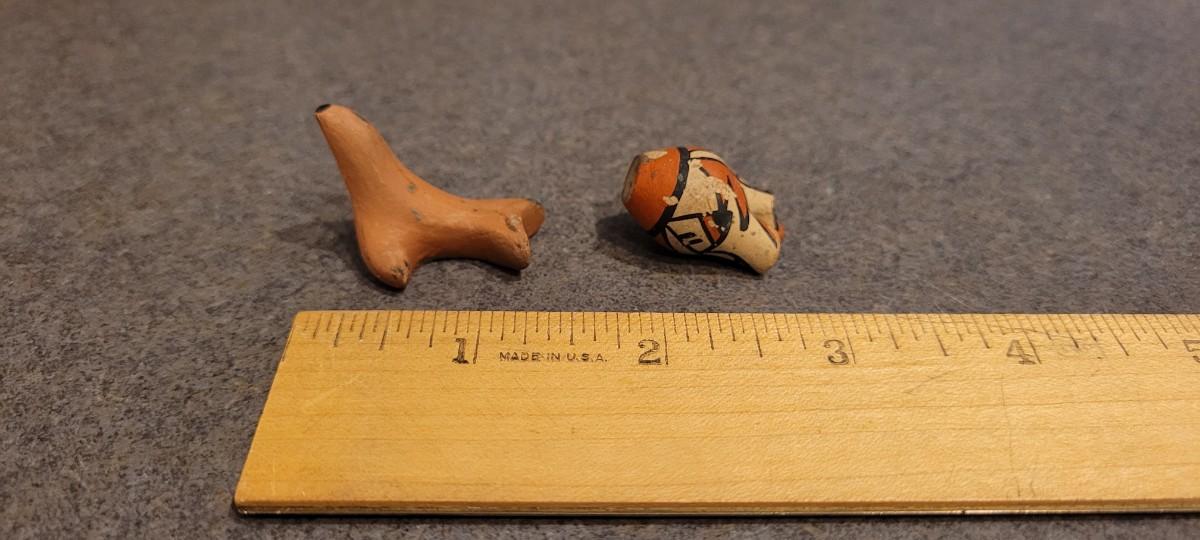 Both of these small Pottery creations have some residue from Display puddy on them and various degrees of wear from age and display. Both items shown are included in this lot.