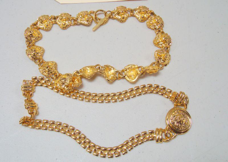 Lot 2031 - Pair of Necklaces Gold Color with Lion Head Design