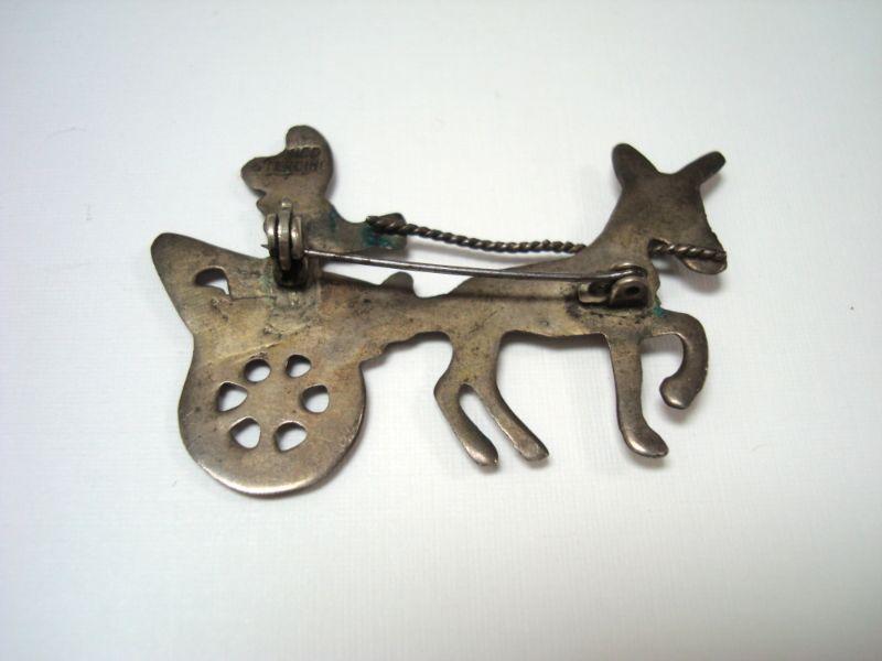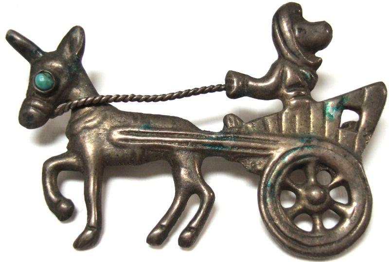 Lot 2039 - Sterling Silver Brooch - Rider in cart with donkey