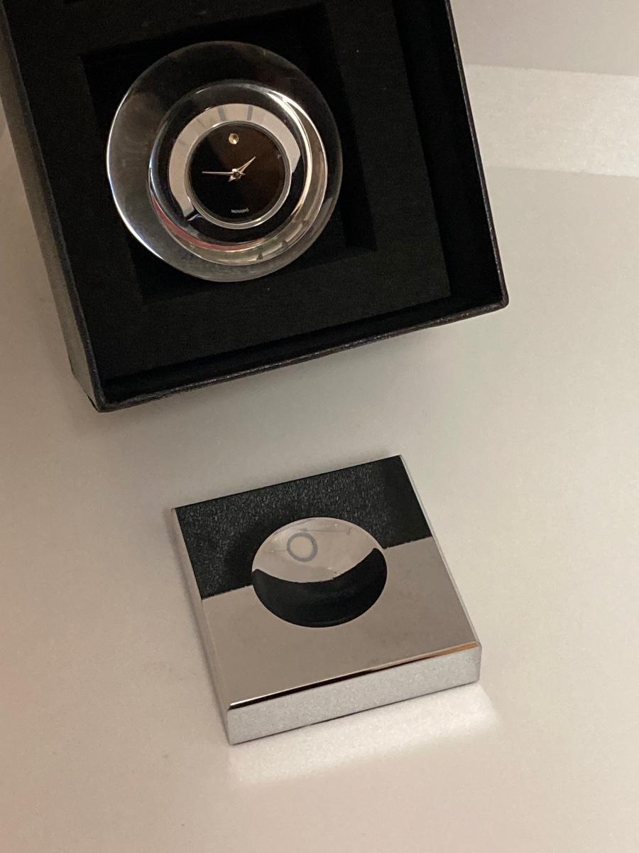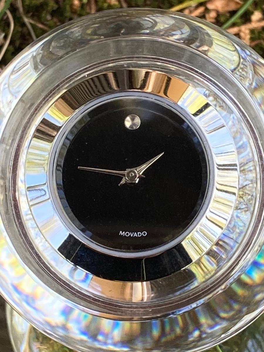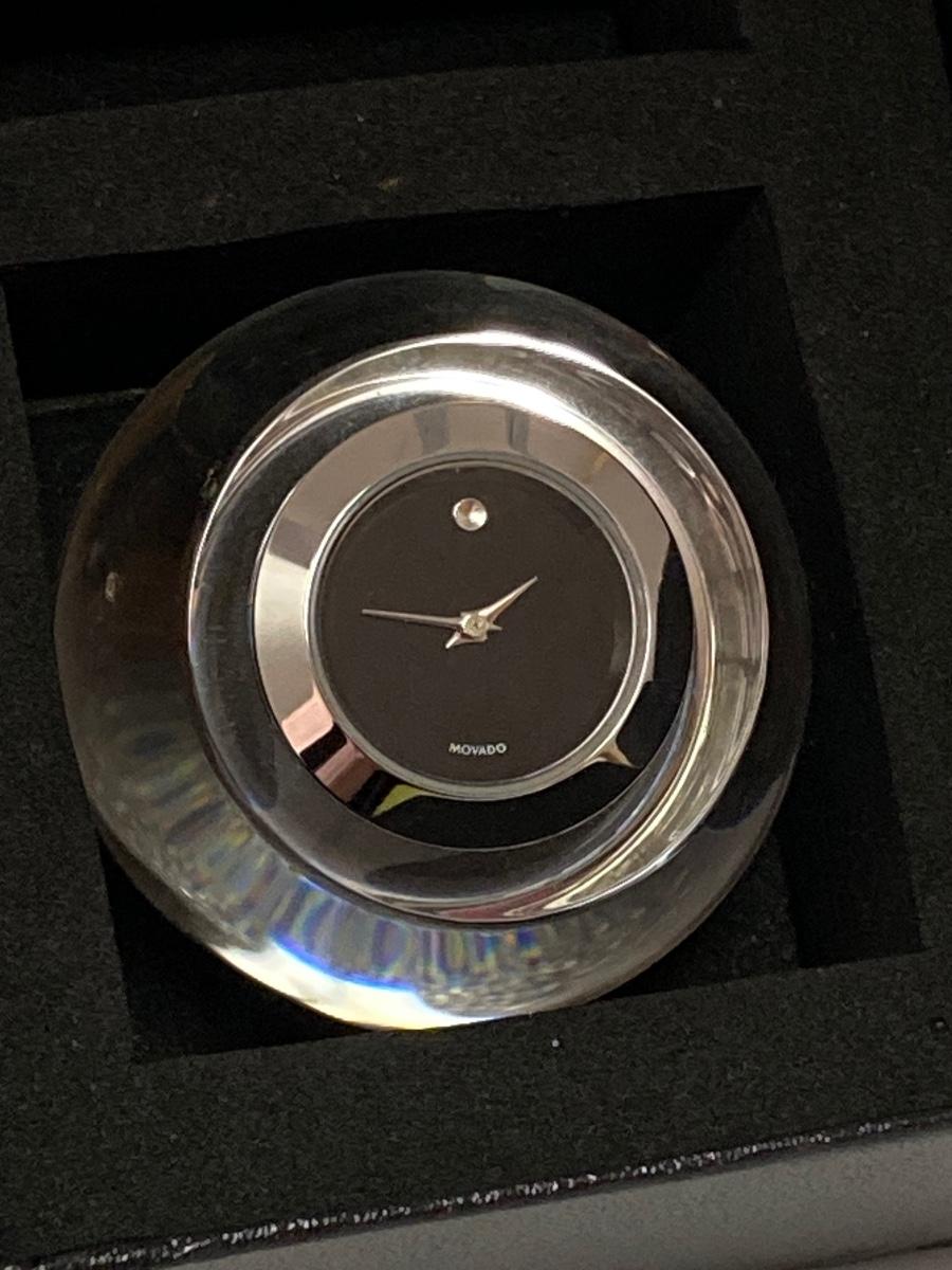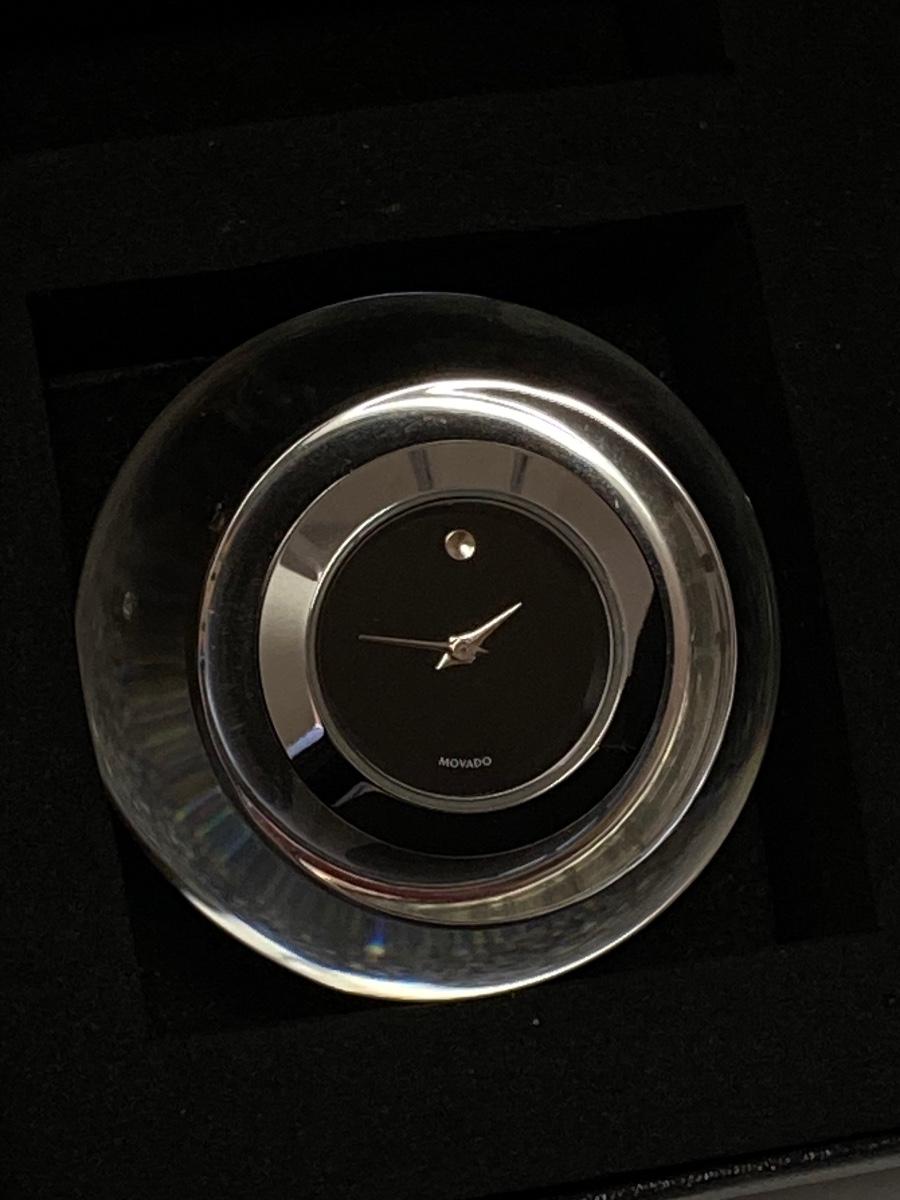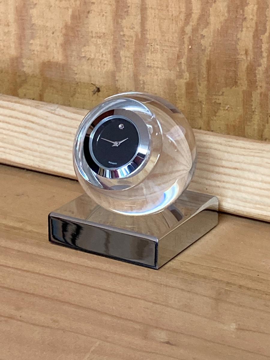 LOT 204: Movado Crystal Sphere Engraved Desk Clock