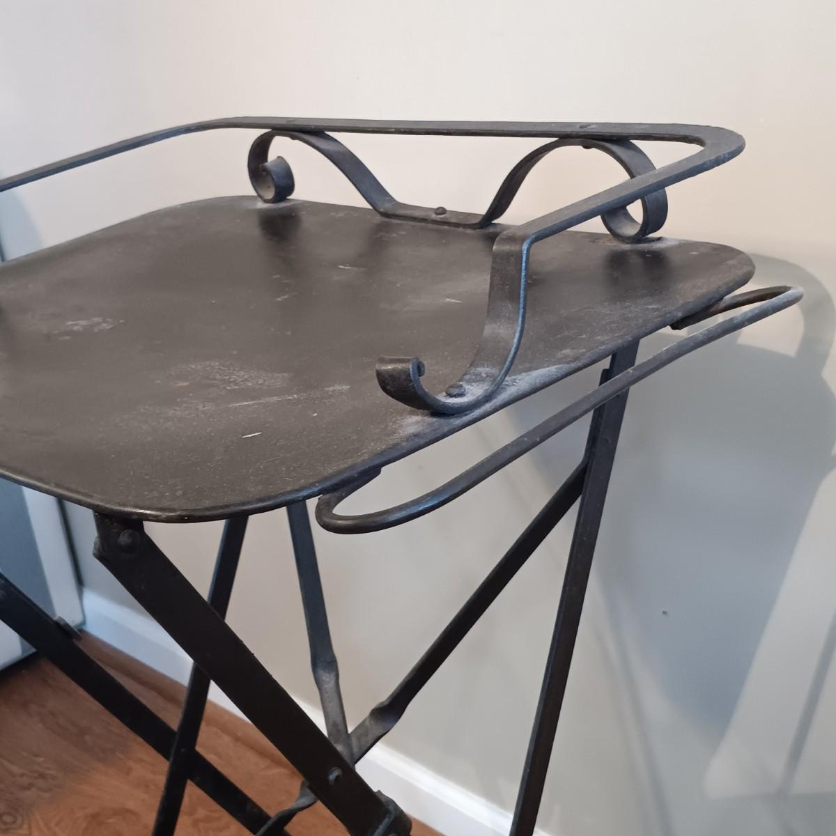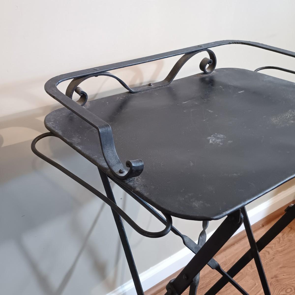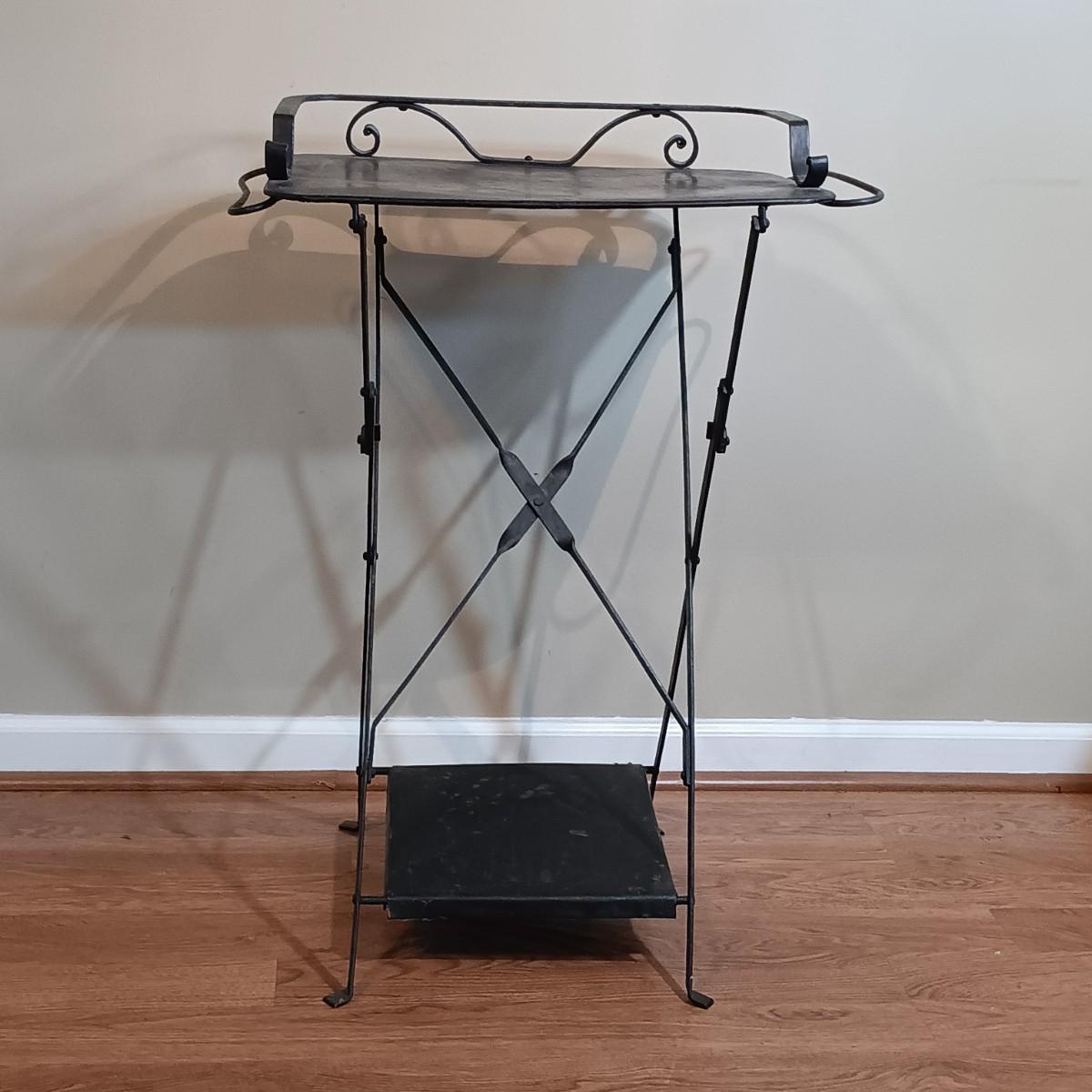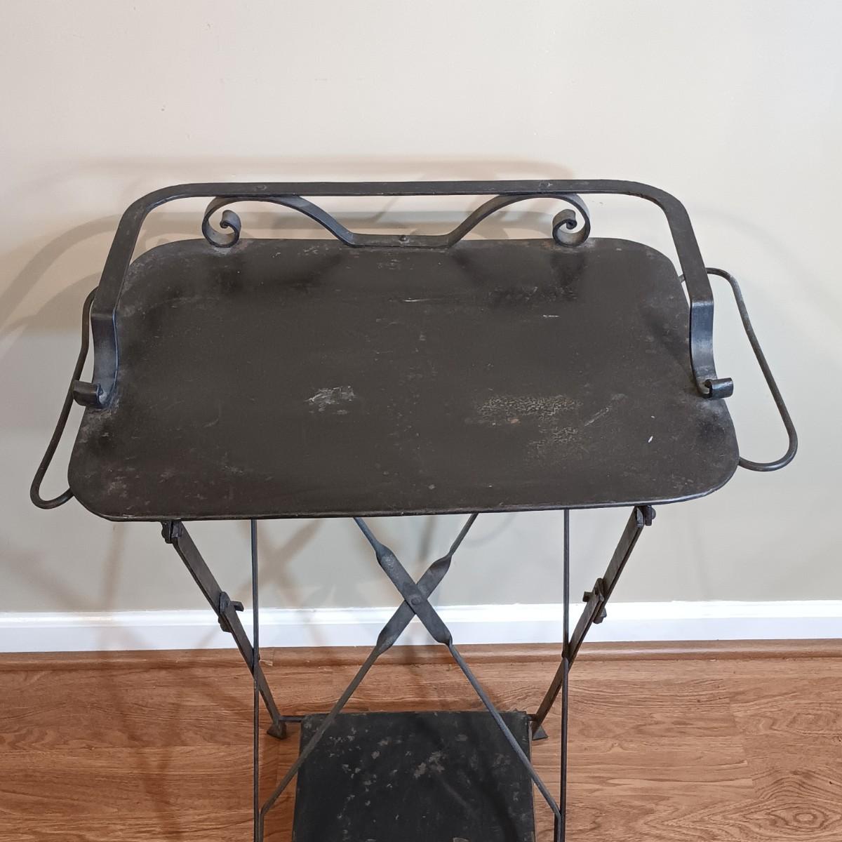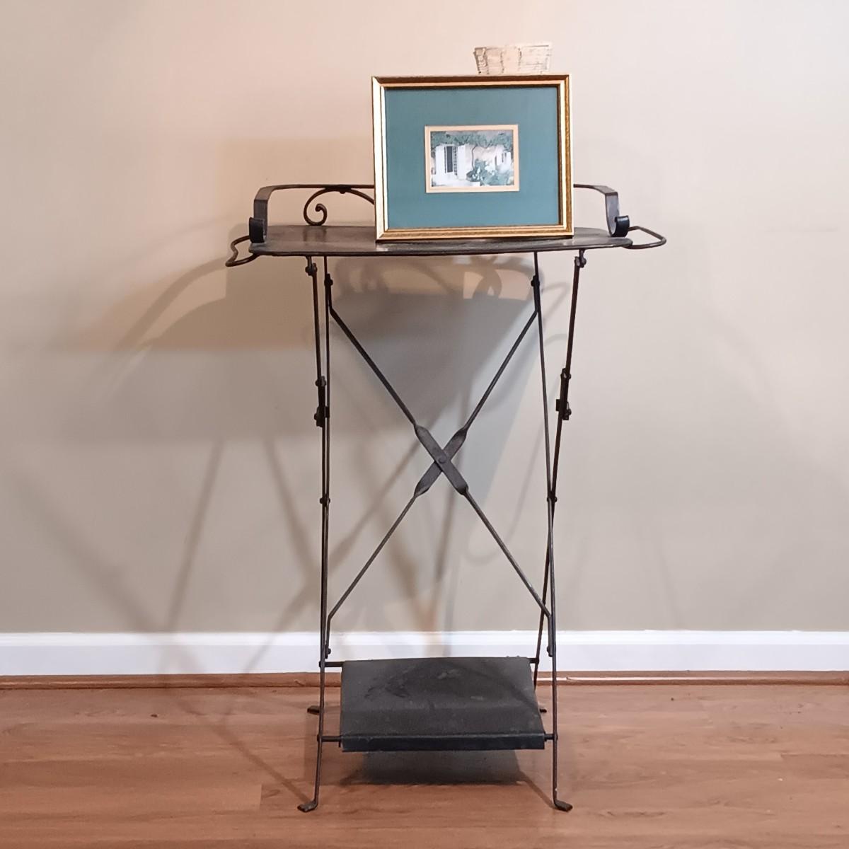 LOT 204: Vintage Wrought Iron Metal Folding Table w/ Nancy B. Roberts Print & Metal Decor