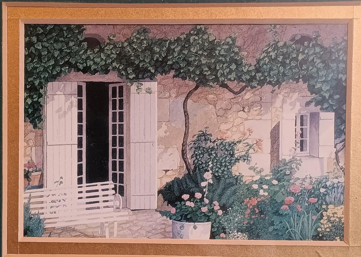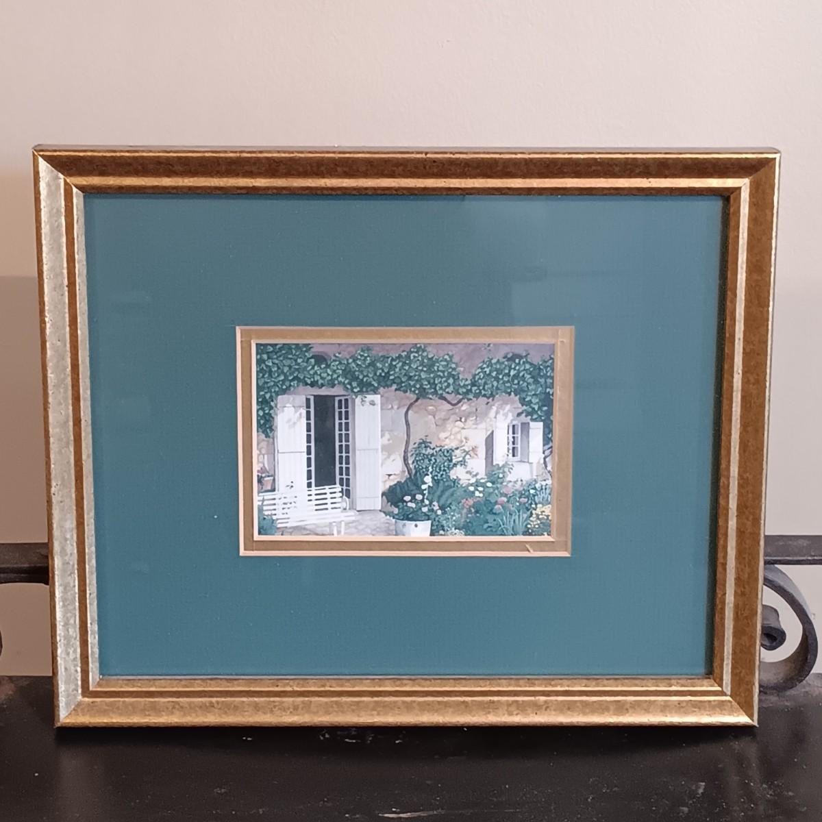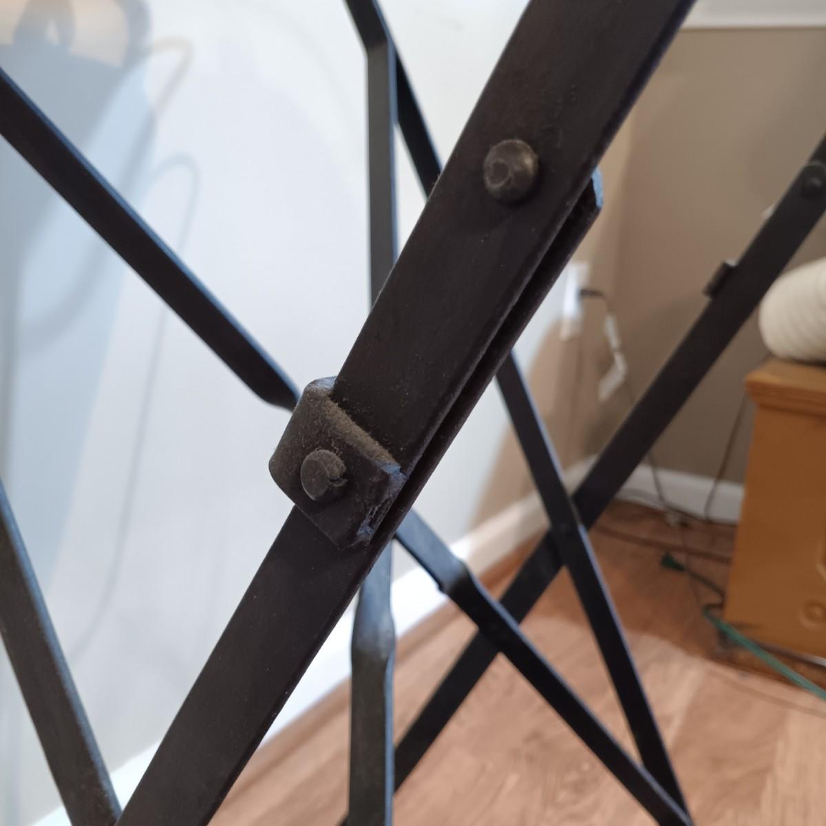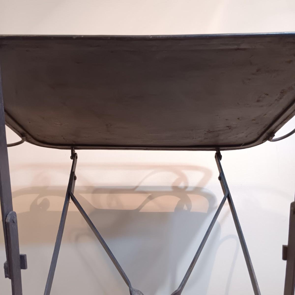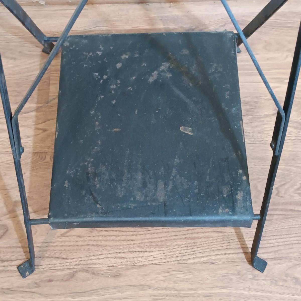 LOT 204: Vintage Wrought Iron Metal Folding Table w/ Nancy B. Roberts Print & Metal Decor