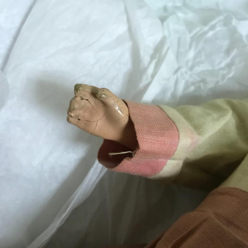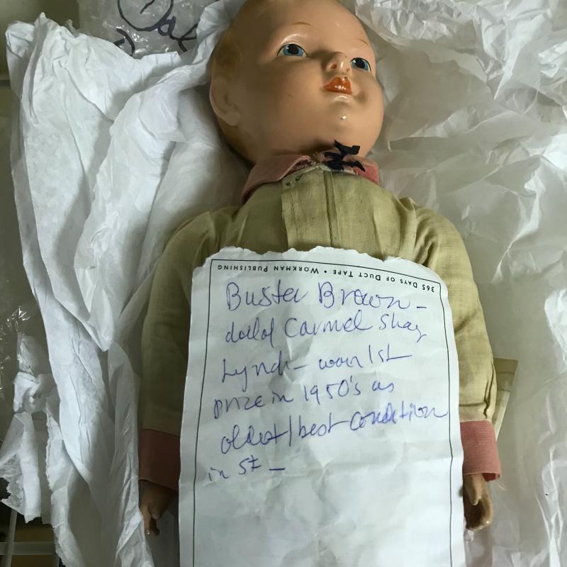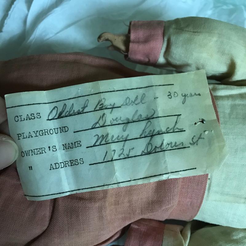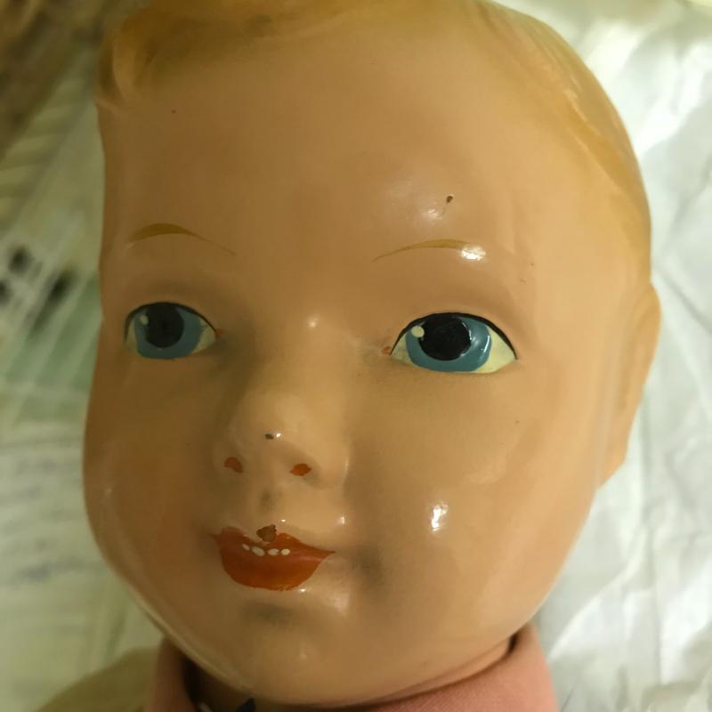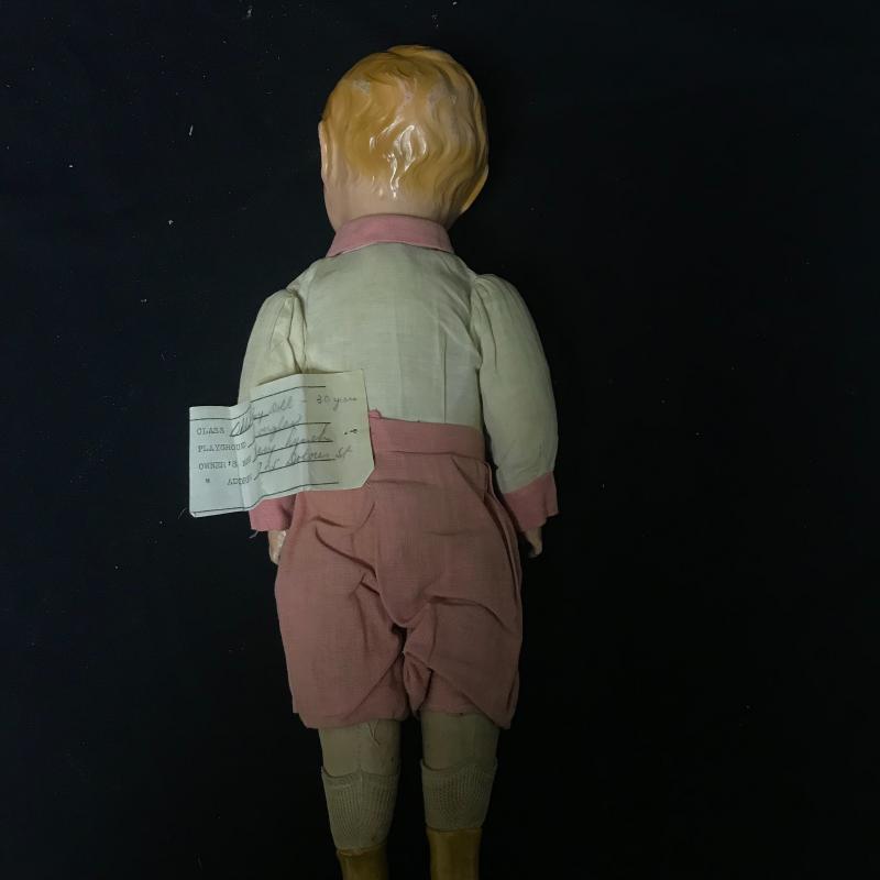 Collector worthy doll that apparently won a contest in San Francisco in the 1950’s. Doll is In good condition and was stored in tissue and plastic. No markings, clothes are pinned to body of doll. 16.5” long, Shipping available.