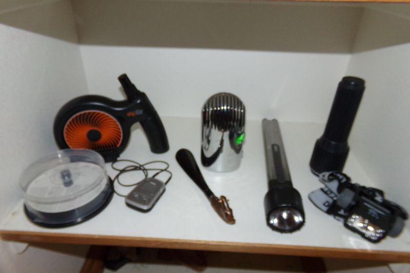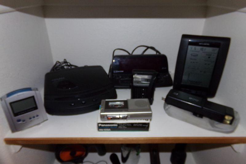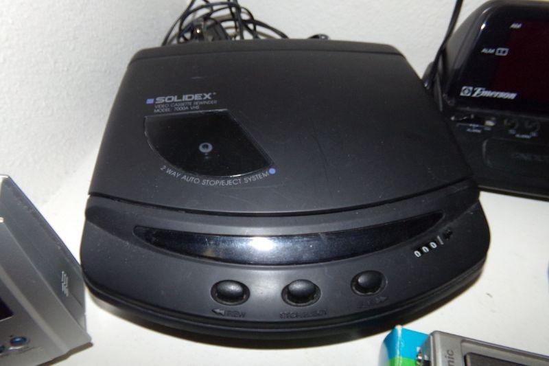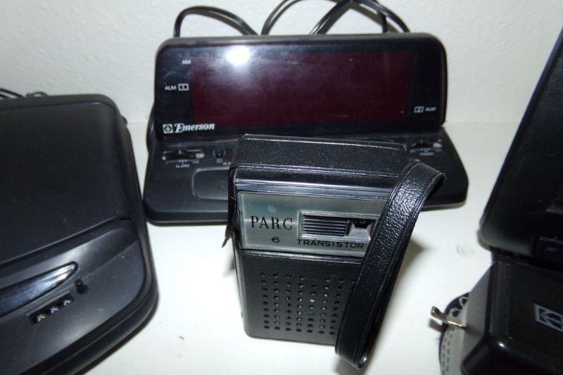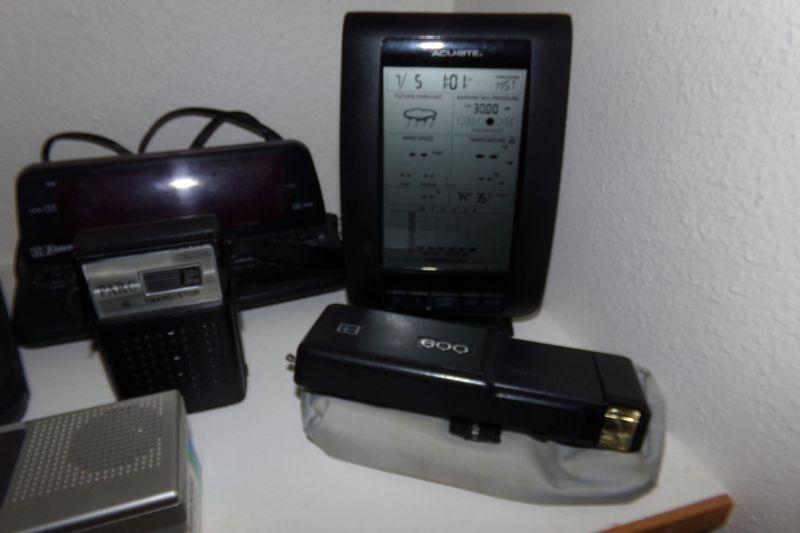 EMERSON ALARM CLOCK RADIO, SOLIDEX VIDEO REWINDER, MINI TAPE RECORDER, PARC TRANSISTOR RADIO, ACURITE WEATHER STATION, FLASHLIGHTS, SMALL RADIO AND MORE