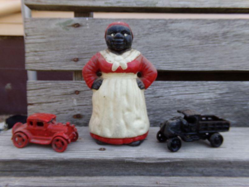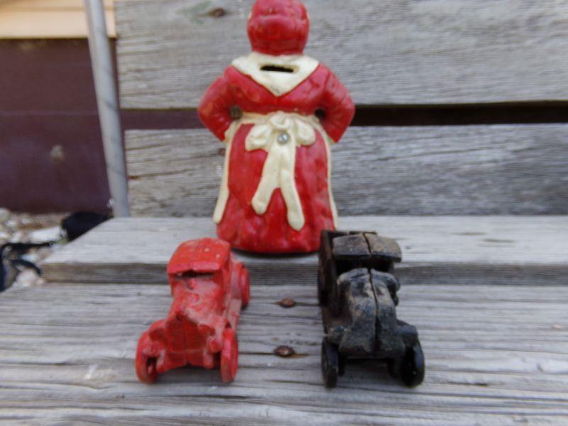 LOT 204  CAST IRON AUNT JEMIMA BANK & TOY CARS