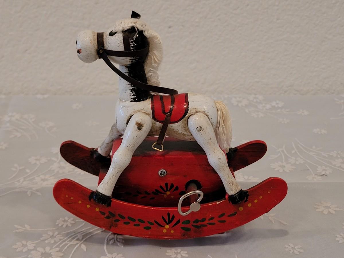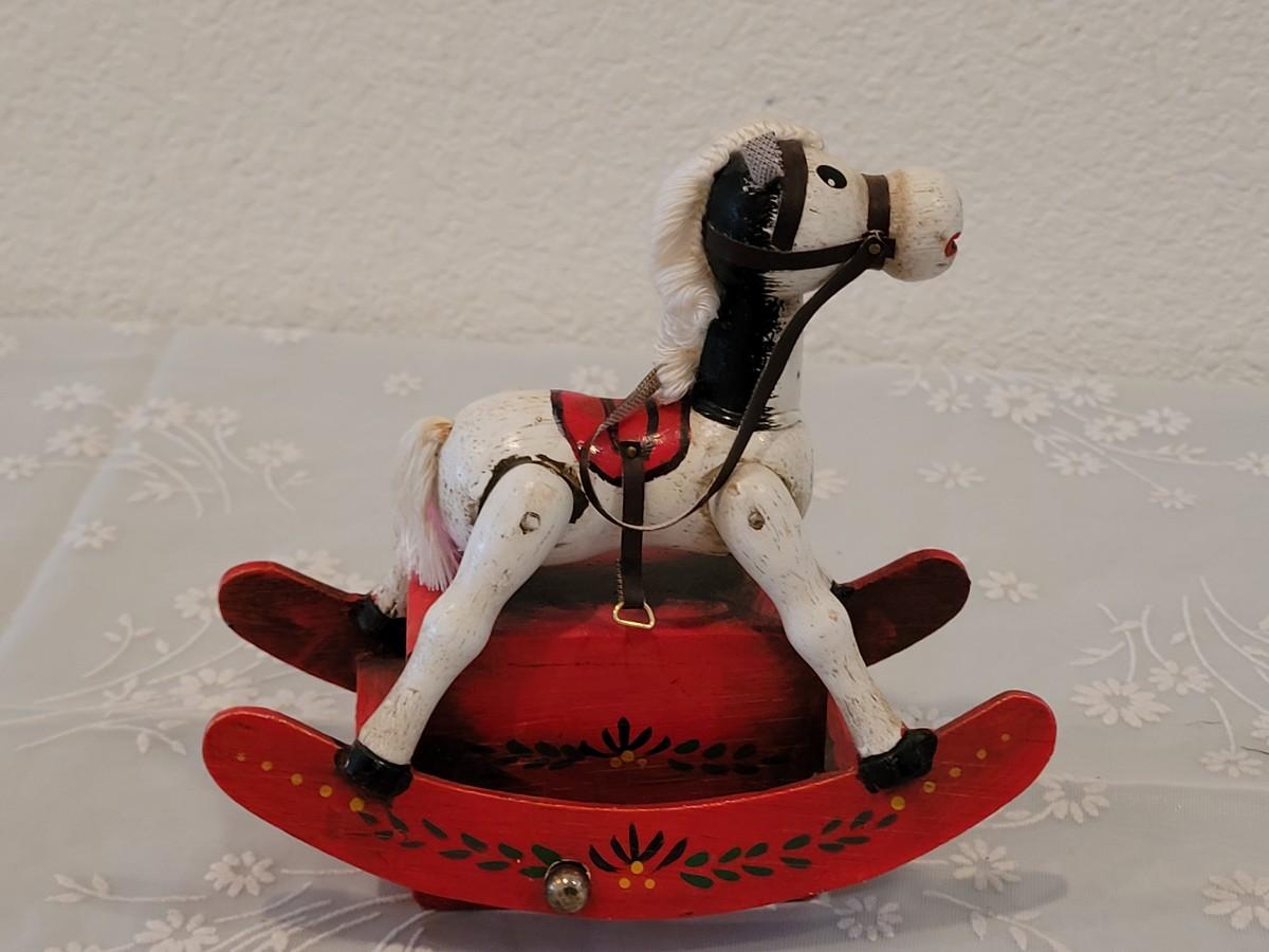 Lot 204: Vintage Enesco Music Box Rocking Horse