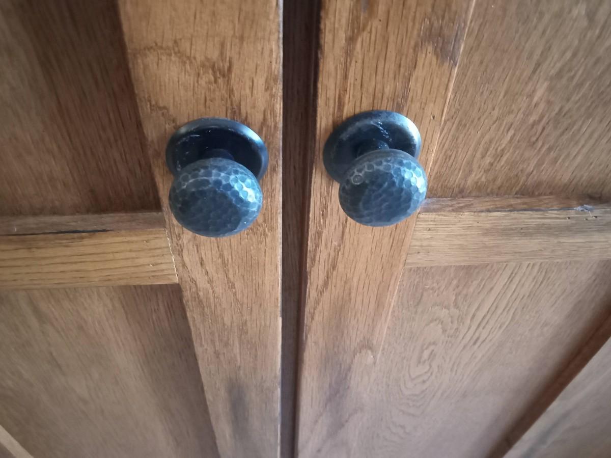 IT IS MEANT TO HAVE A RUSTIC LOOK WITH IMPERFECT CORNERS AND WOOD, IRON HANDLES 36" X 15" X 46"