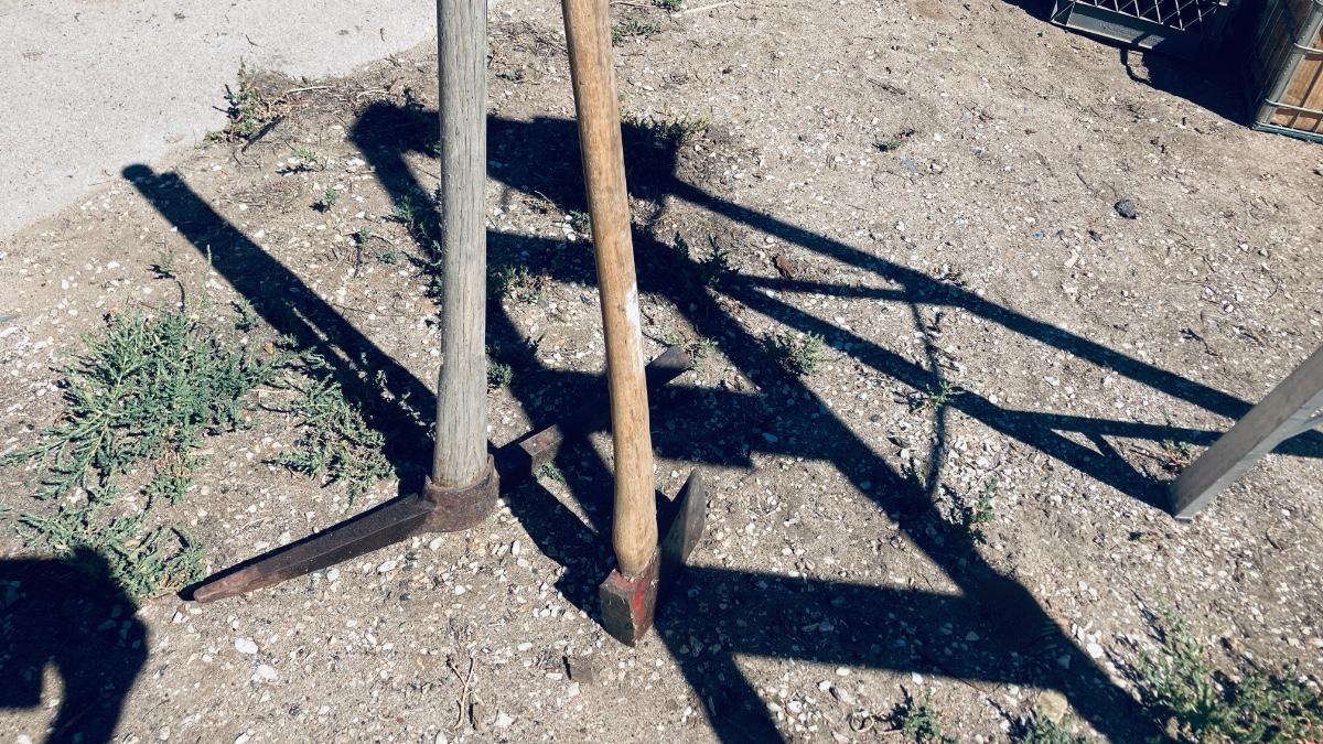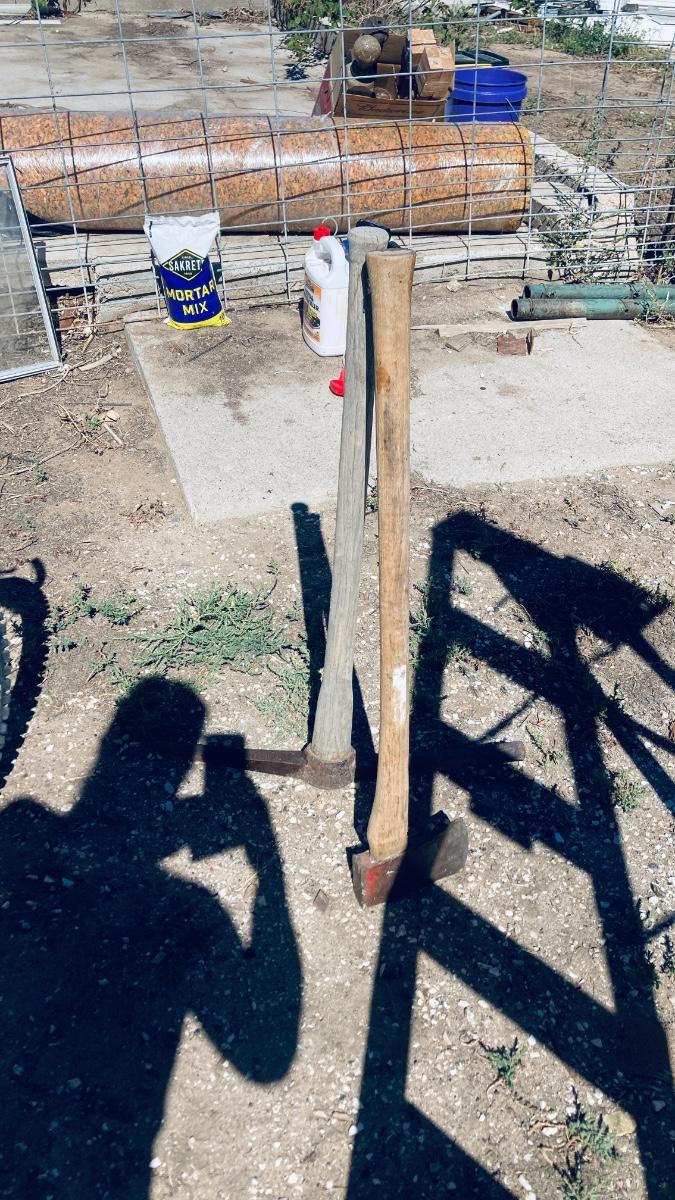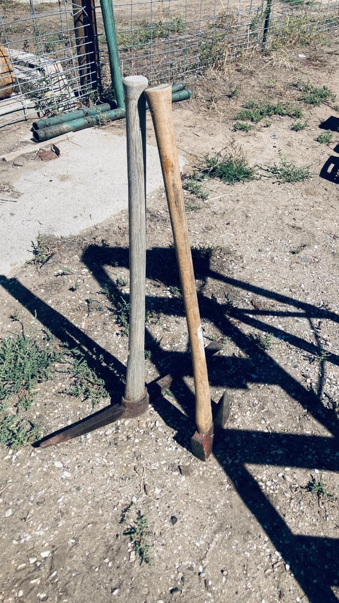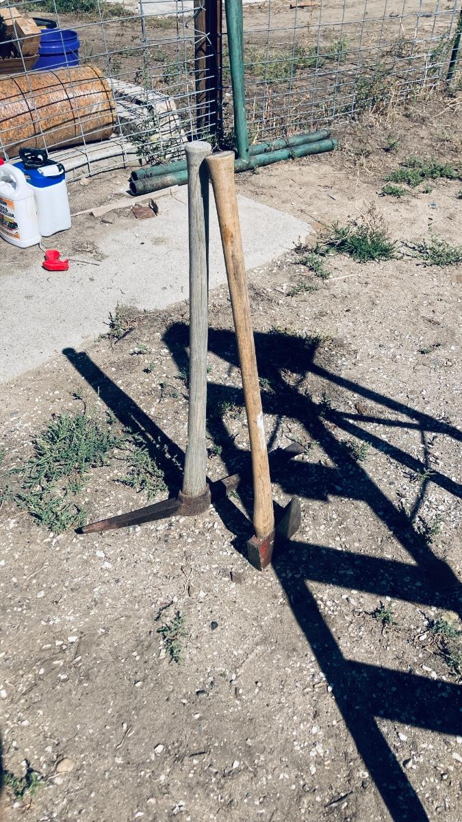 LOT 204  AXE AND PICK AXE ON WOODEN HANDLES