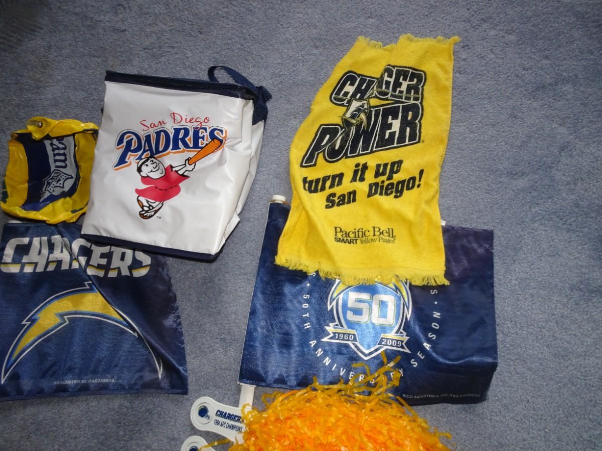 LOT 204. PADRES, CHARGERS, SOCKER ITEMS