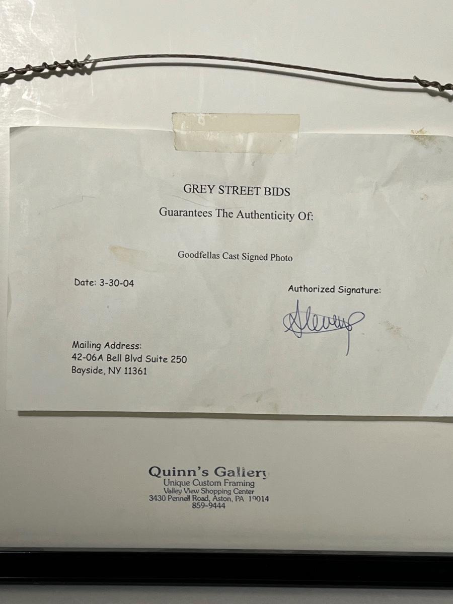 LOT 204: Autographed Framed Goodfellas Cast Picture - De Niro, Pesci, Liotta, Sorvino - COA