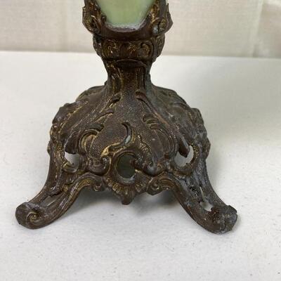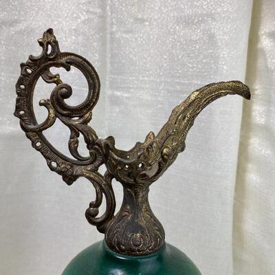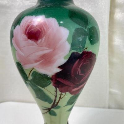 Lot# 96 Antique Hand painted Ewer Brass Red Pink Roses Green Background