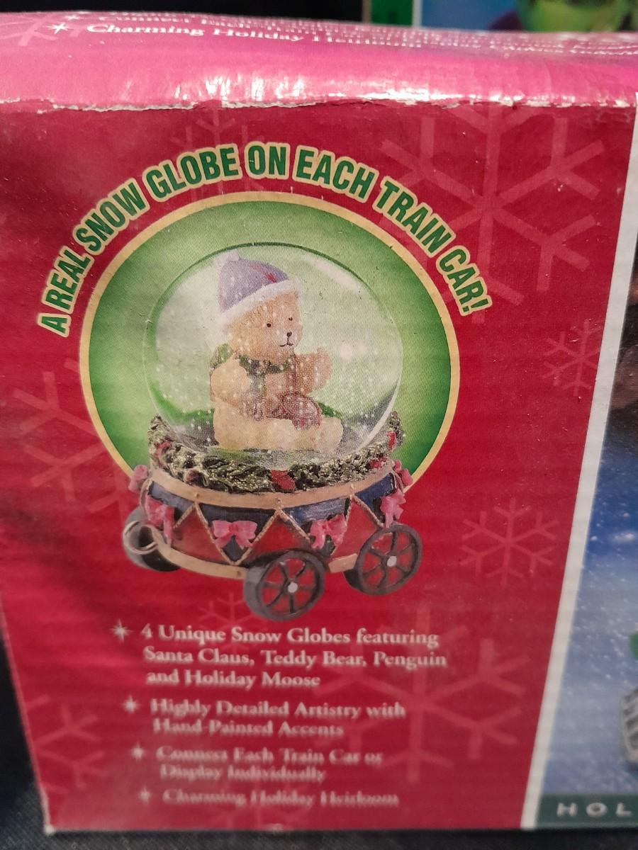COLORFUL ORNAMENT BALL TREE AND SANTA AND FRIENDS SNOW GLOBE TRAIN
